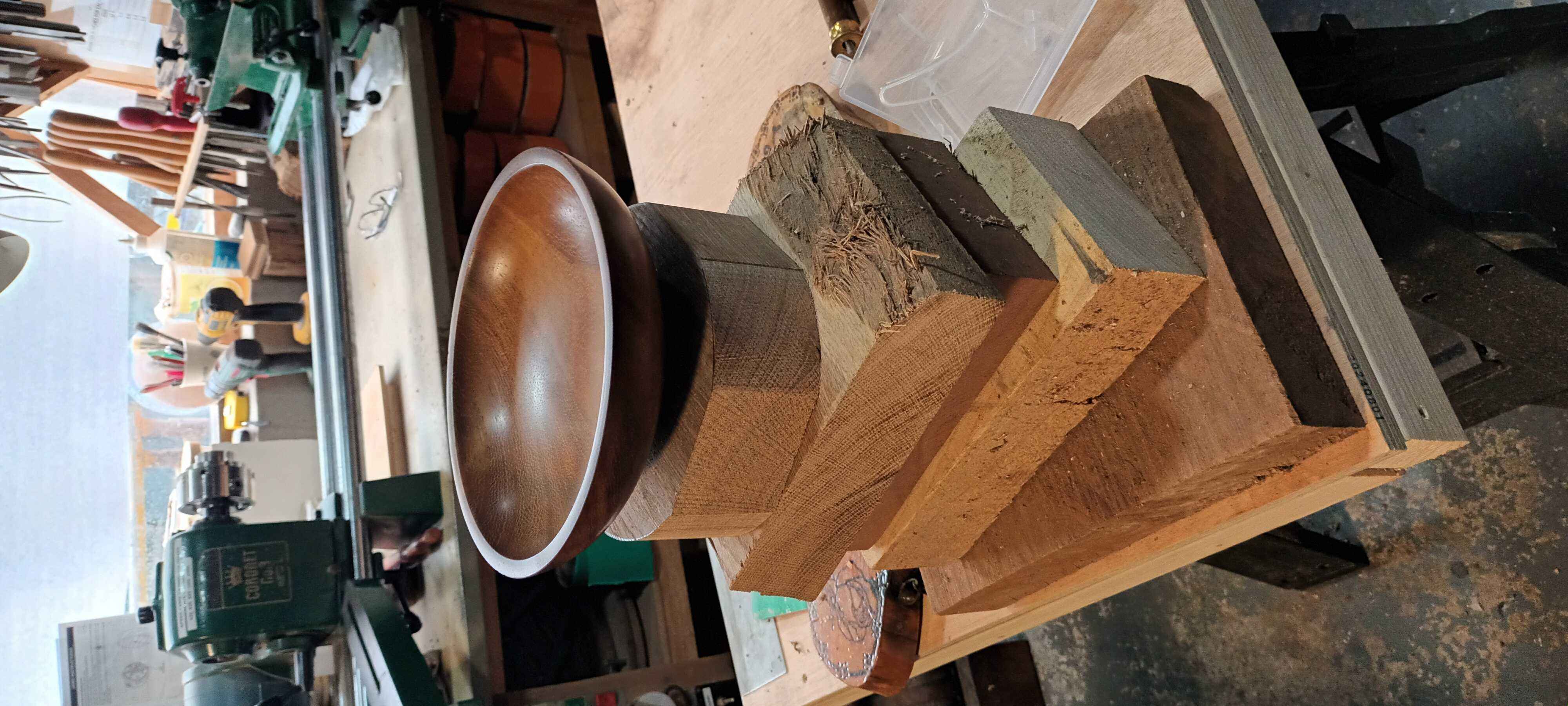 I think it's acacia! A friend was given a load off offcuts as firewood from a woodyard. Fortunately he knows I like turing, and invited me to take a selection of pieces. It turns a bit like the African walnut, with a high risk of chatter. I kept a fairly flat form to show the grain as much as possible, and it went back to the friend as a wee thank you.
