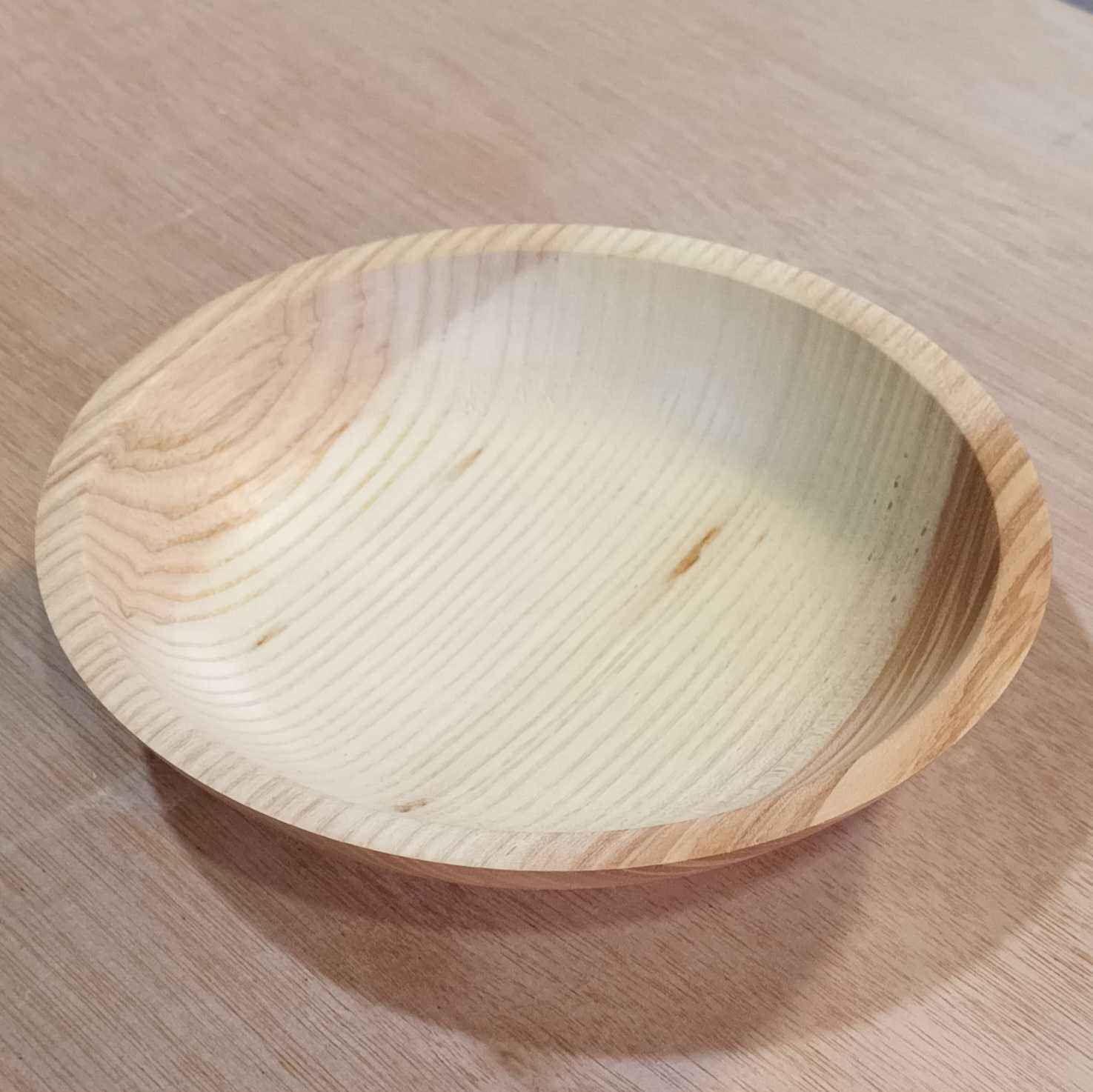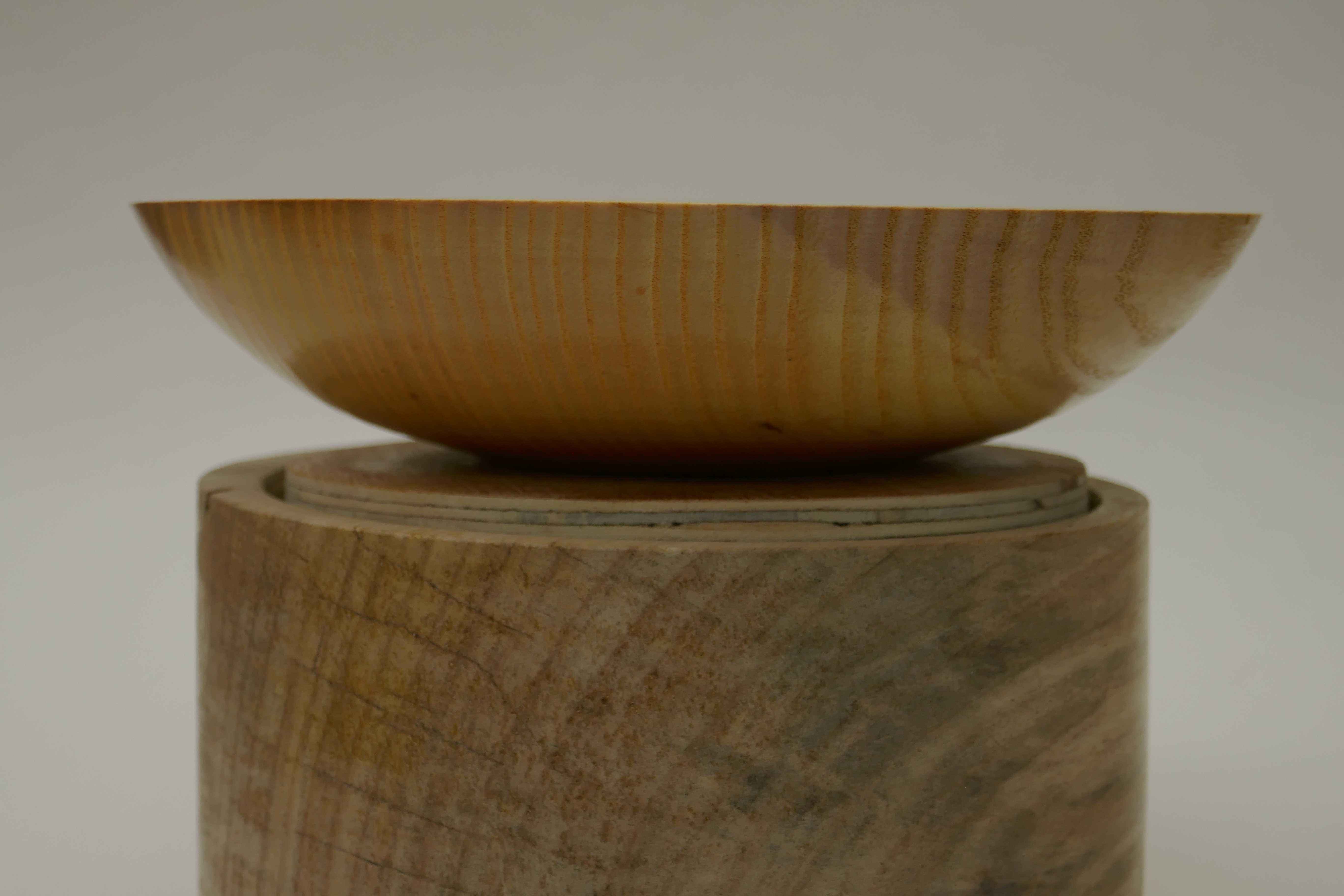 Ash is easy to turn, but is a fairly plain blond wood unless you are lucky enough to find spalting, burl, or some nice figuring at a branch junction. This bowl has a little discoloration from early spalting, and is a pleasing open shape. The traditional bolied linseed oil and beeswax finish is food safe.