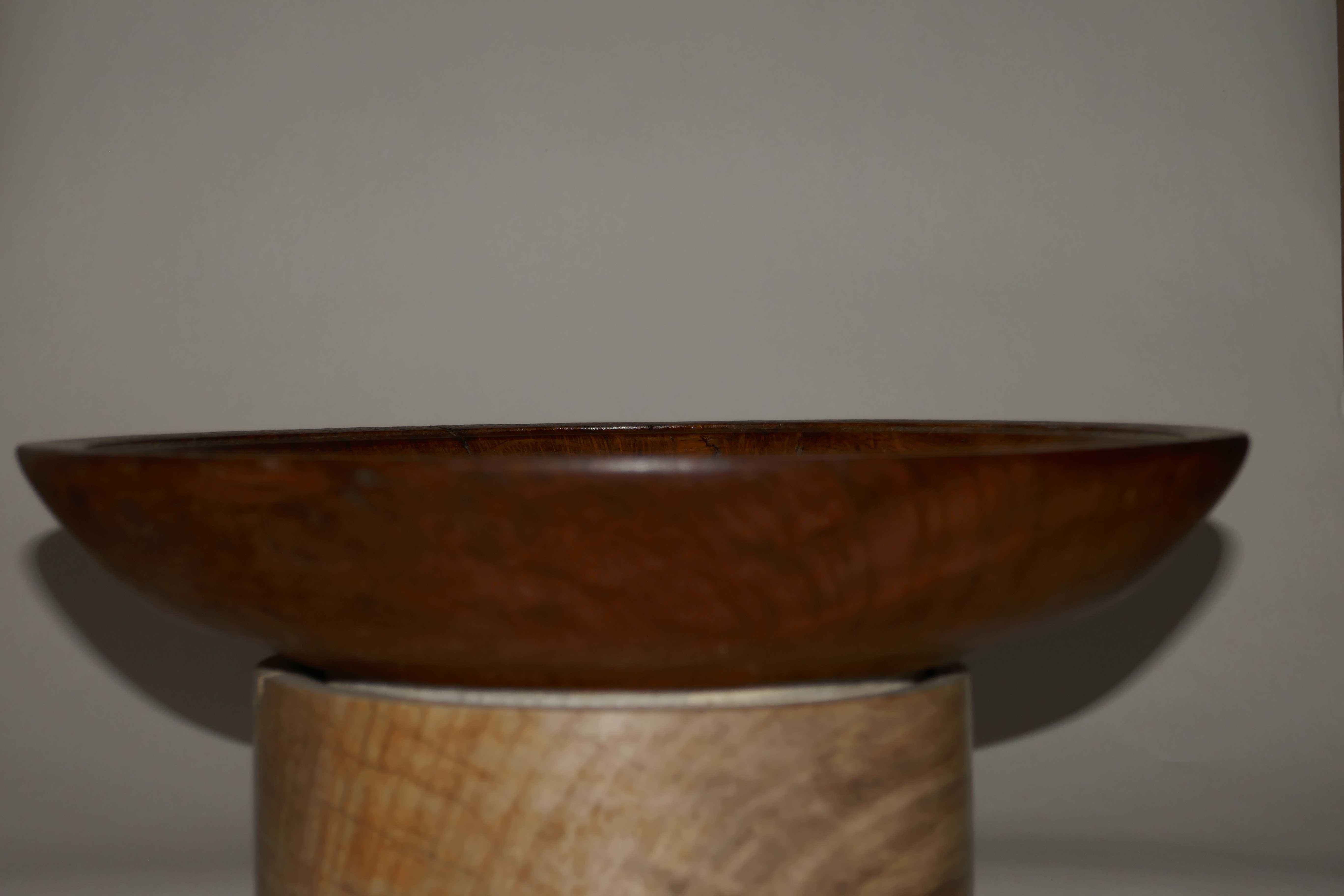 Dad started turning a church collection plate style platter, but had a nasty dig on the rim. I rescued it from the firewood pile and removed the rim! I thought it turned out rather nicely. It makes a good fruit dish.