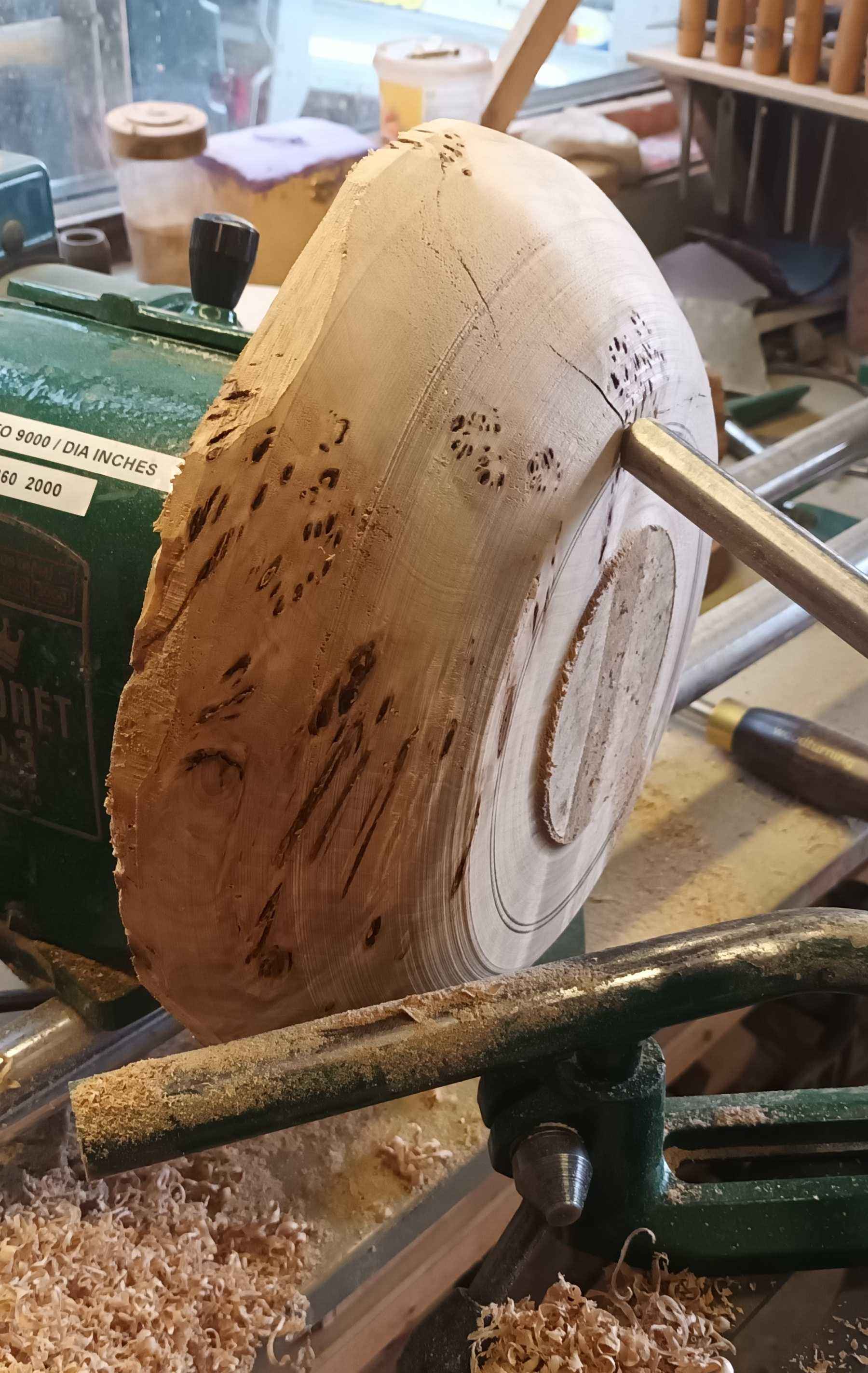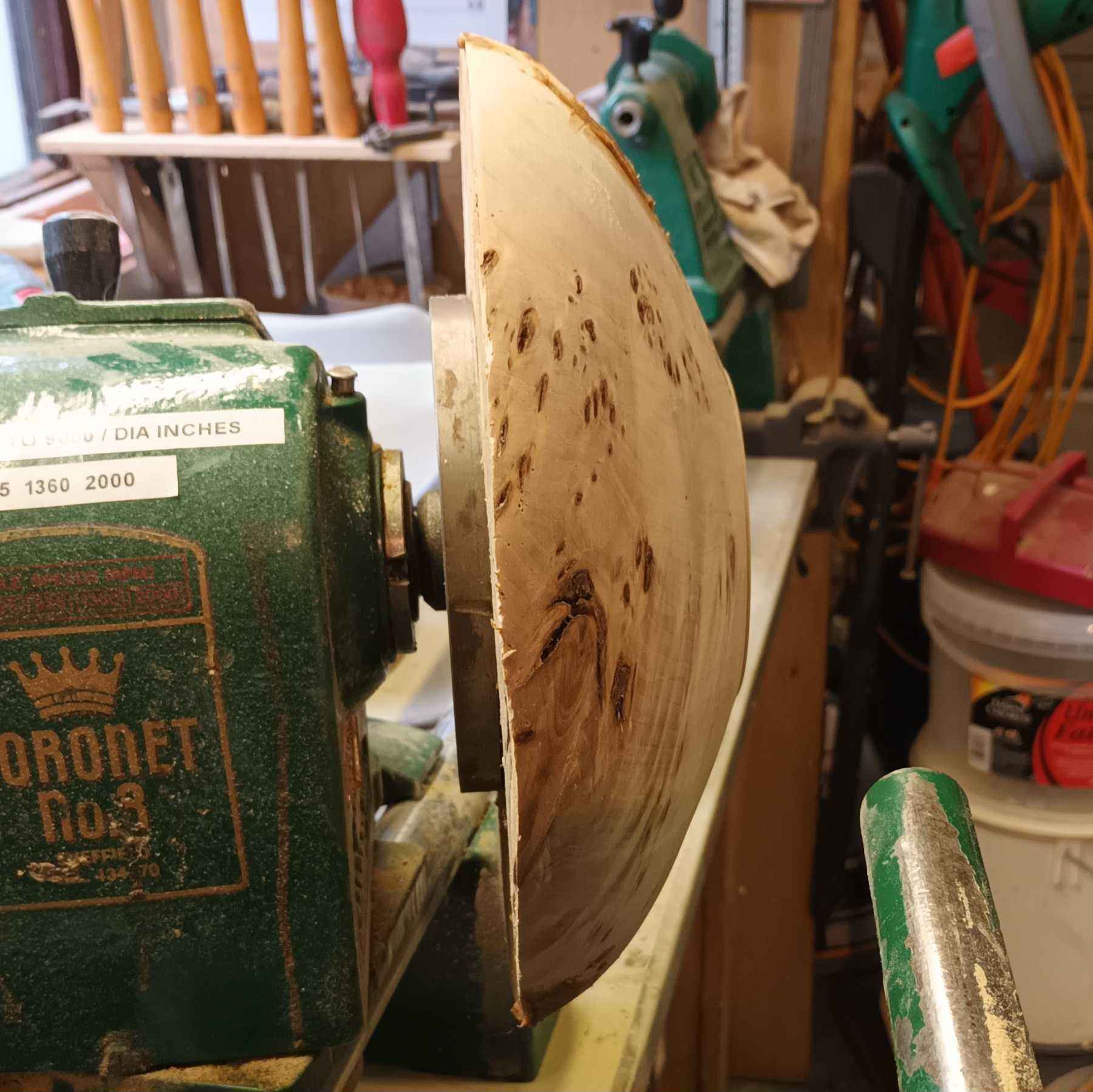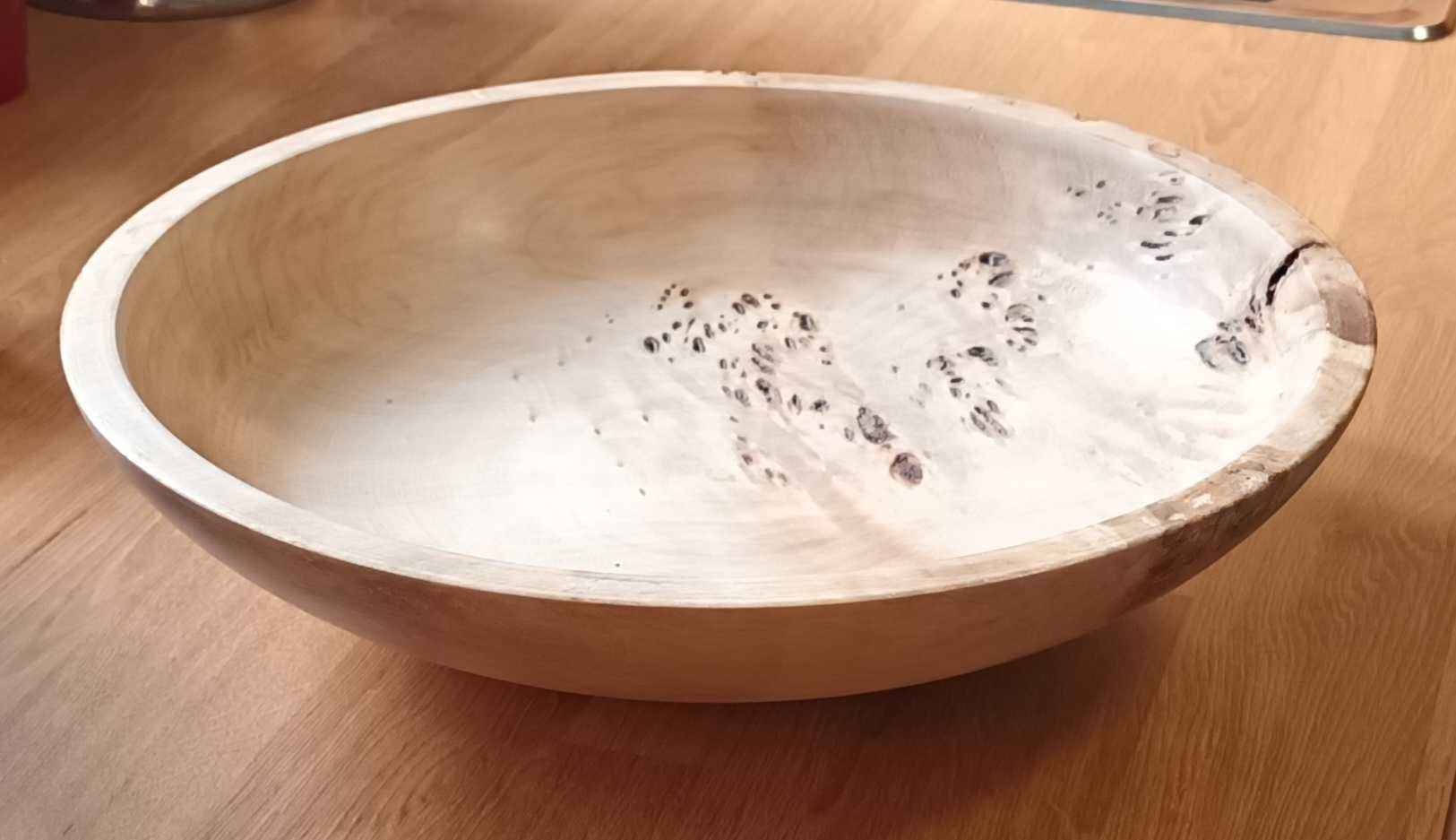 Poplar is quite an ordinary looking wood, but this piece of burl had survived the time under Dad's bench and made a nice platter. This is now doing service as a fruit bowl at a friend's house.