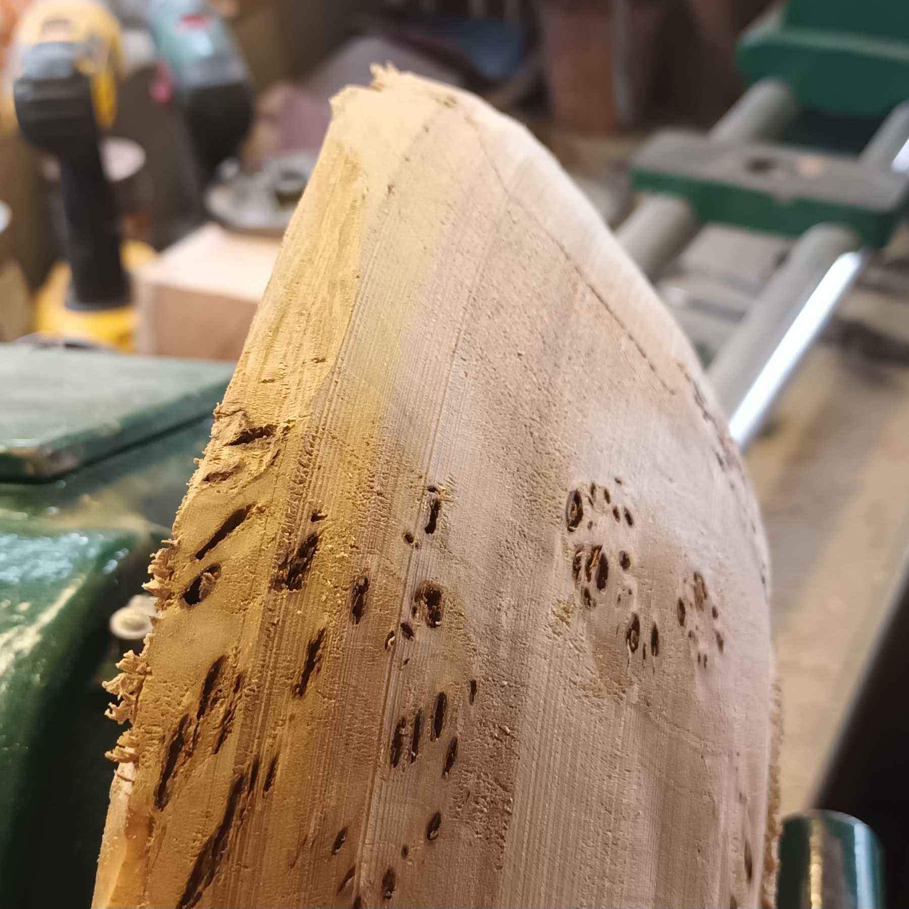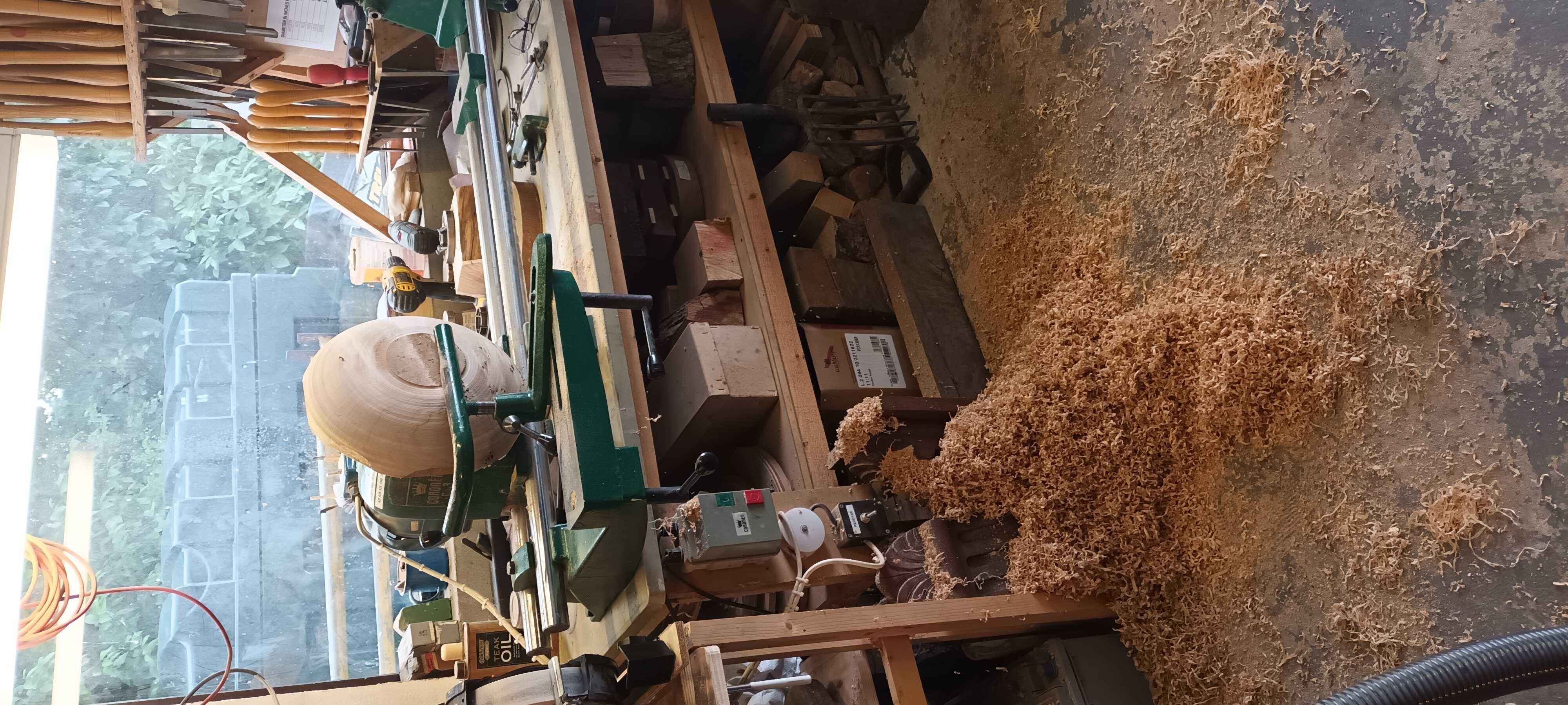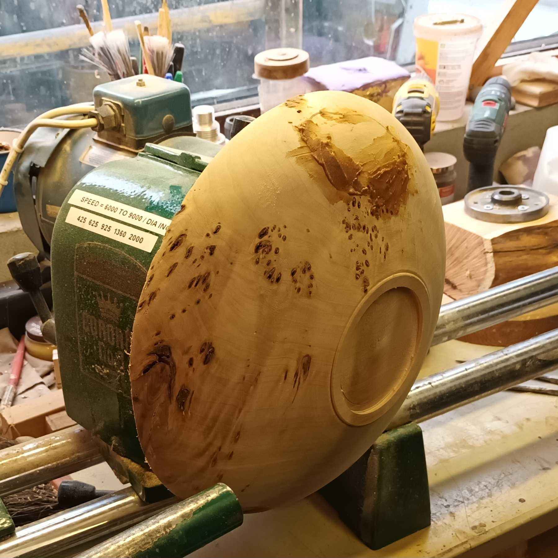 Poplar is quite an ordinary looking wood, but this piece of burl had survived the time under Dad's bench and made a nice platter. This is now doing service as a fruit bowl at a friend's house.