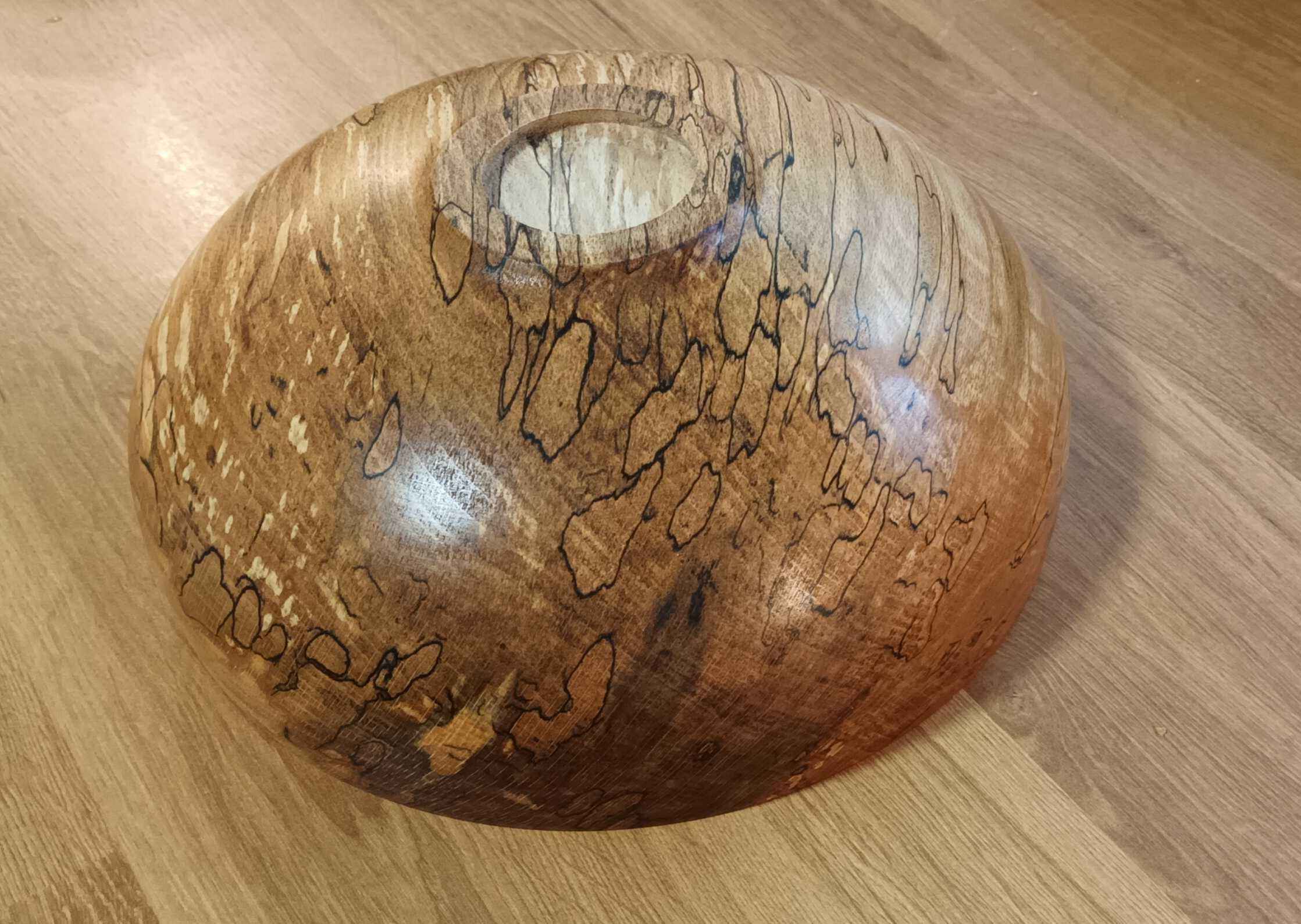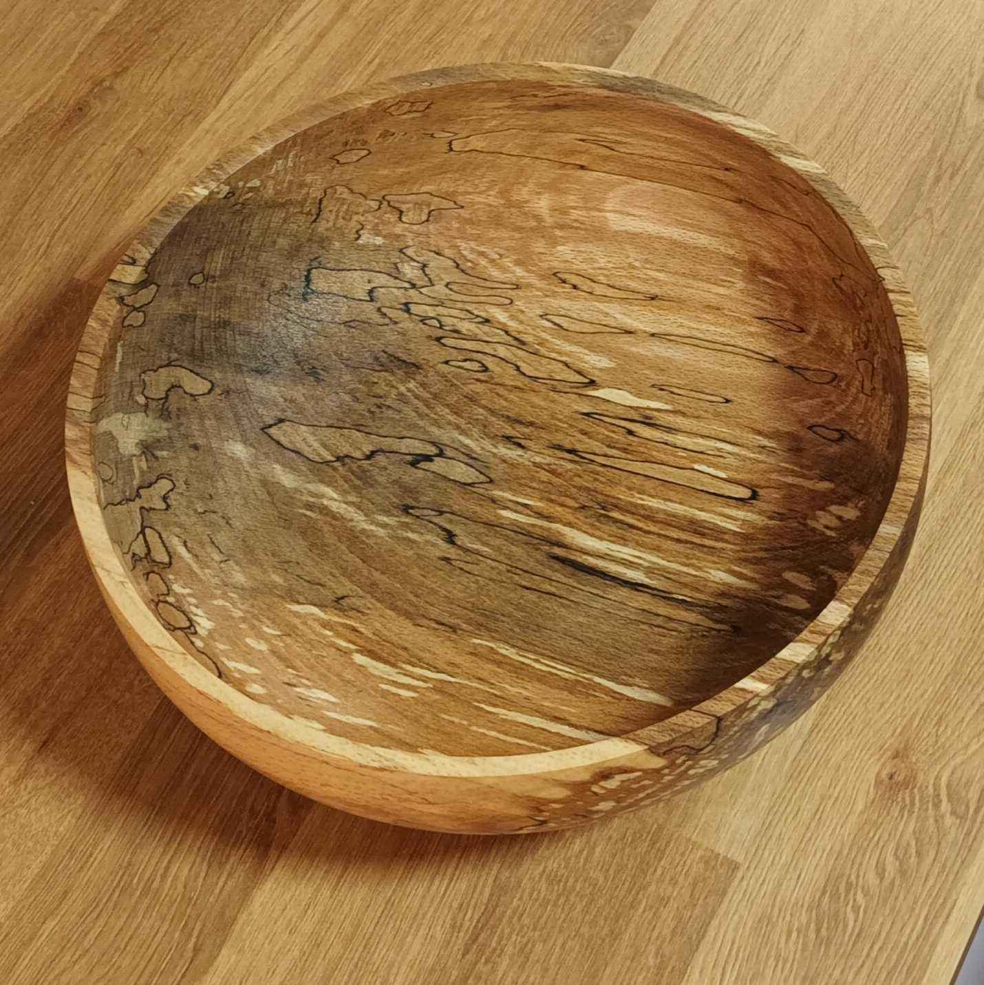 I treated myself to a large piece of spalted beech from The Woodyard in Templepatrick. It sat for ages under the bench until I felt my turning was good enough to cope with such an expensive piece of wood. I ended up with a fairly classical shape, and managed not to lose too much of the spalting pattern - it's all to easy to find the best bits have ended up going to the chickens as shavings for bedding.