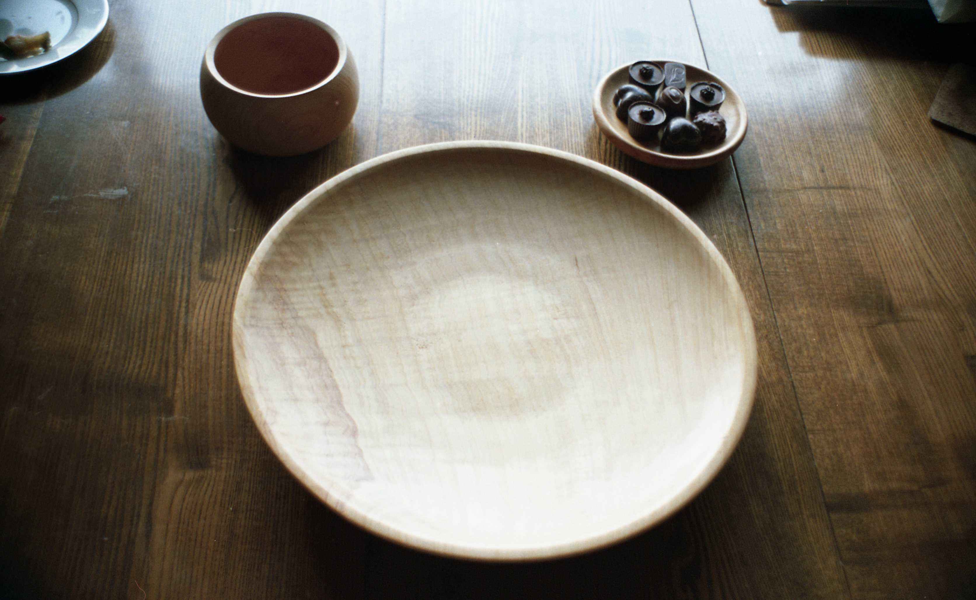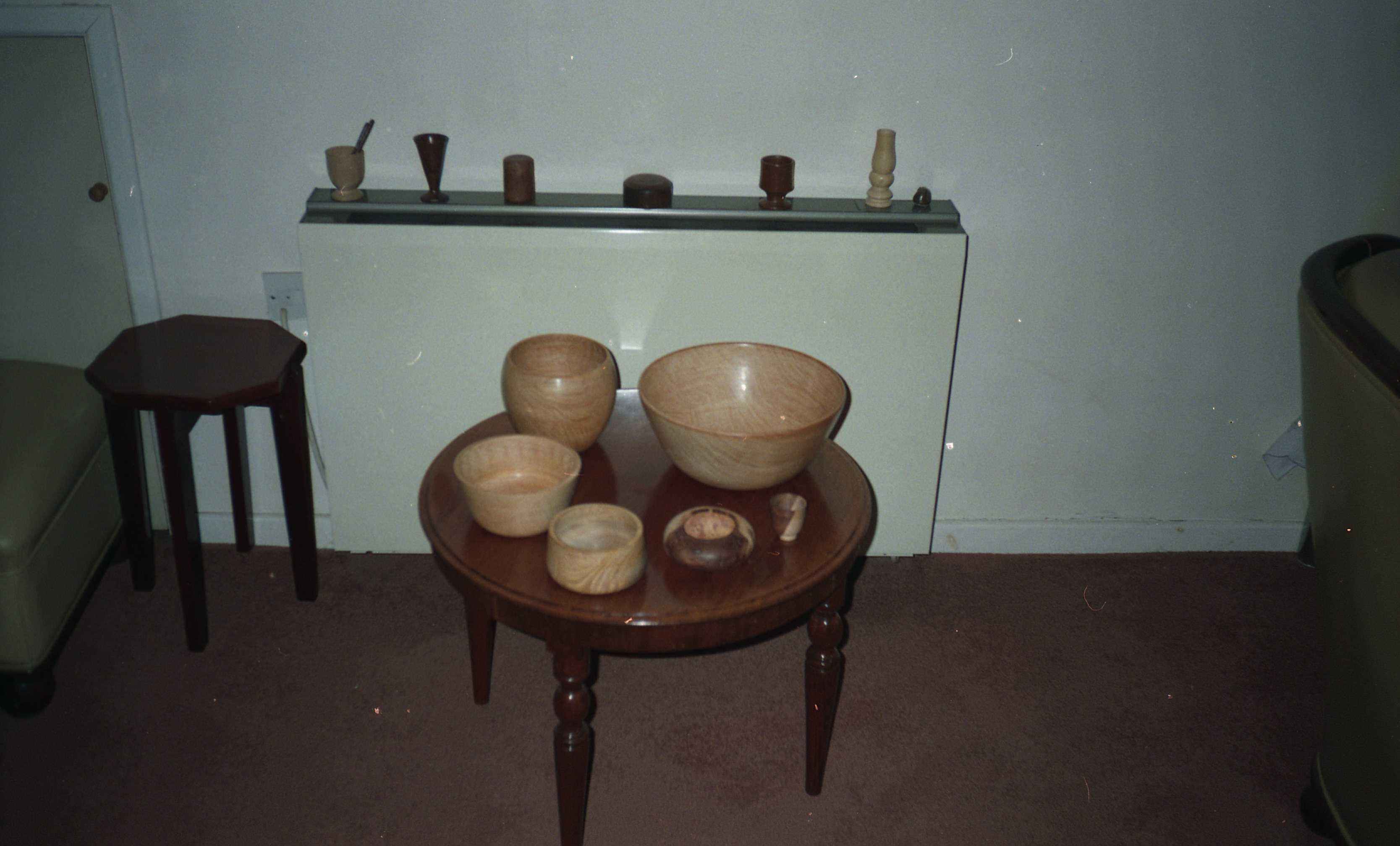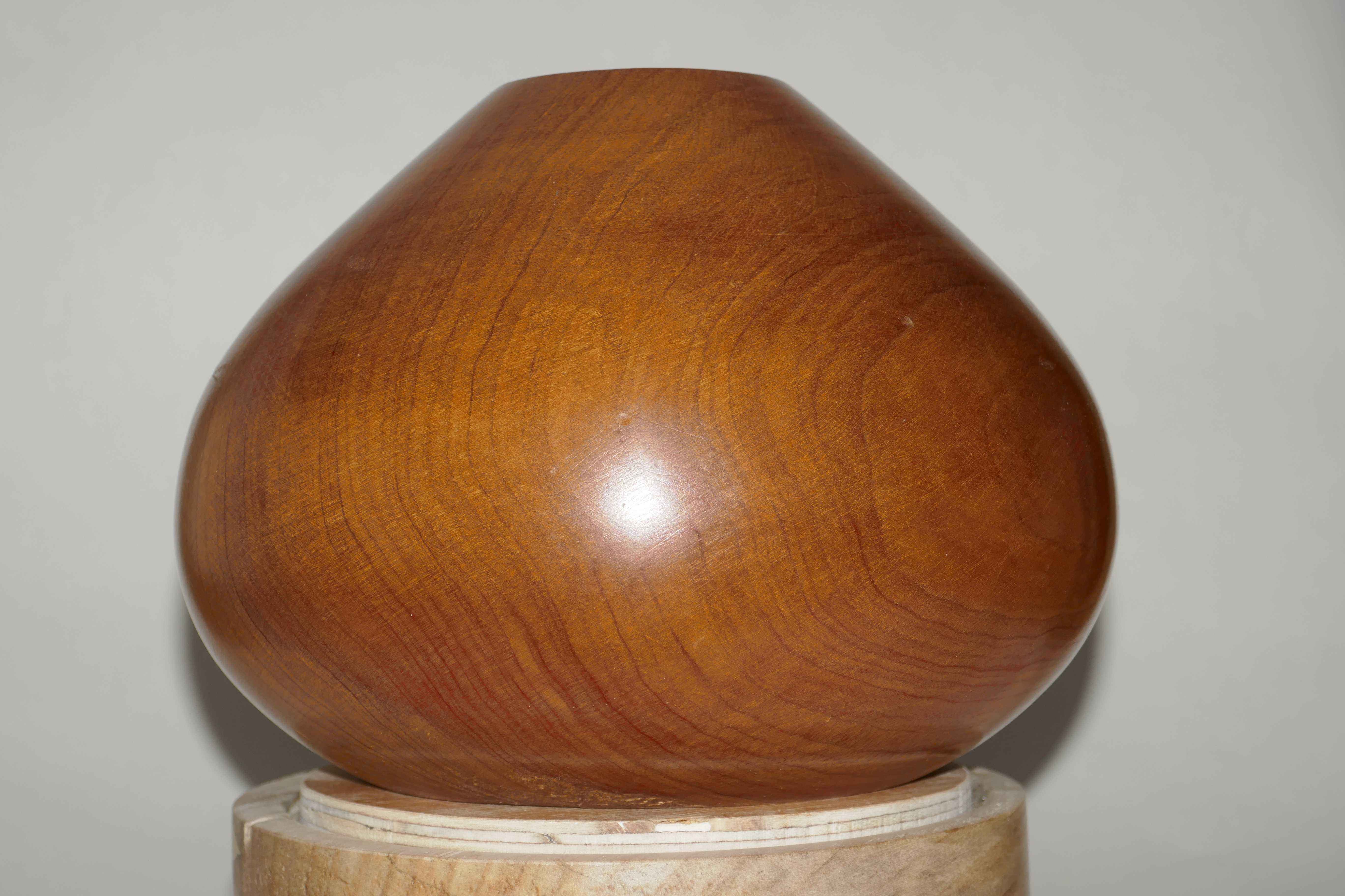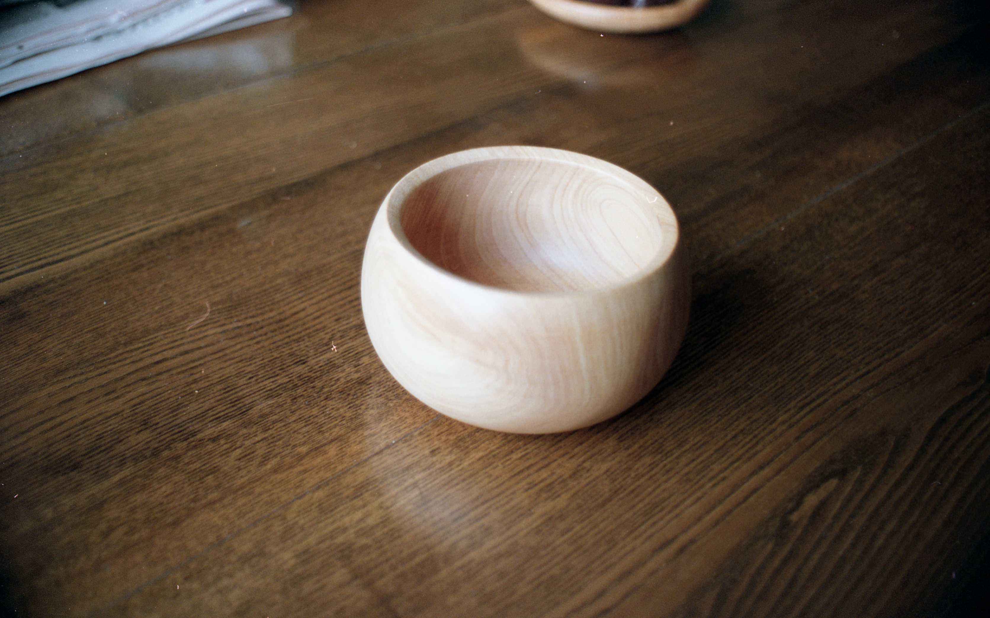 The council cut down a mature Monterey cypress in Craigantlet around 1990. They are usually felled a few feet from the ground, and later a crew comes out to deal with the stump. A friend saw the crew and asked them where they were taking it, "To the dump" they said. "Well, can you dump it in my garage?" he asked. It saved them a trip! The pot in the title photo is a hollow form which is around 2 to 3 mm thick and 200 mm in diameter. The title photo was take shortly after the bowl was turned, and is still very pale. The video was taken recently, and the wood has darkened to a deep golden hue. The wood was still pretty fresh, so easy to turn but gave off a lot of "vapour" which gave me a really sore throat. As this piece is from near the base the grain has been compressed as the tree sways, which gives the lovely, rippled effect. Some other bowls that I turned from this collection of lumps are shown below.
