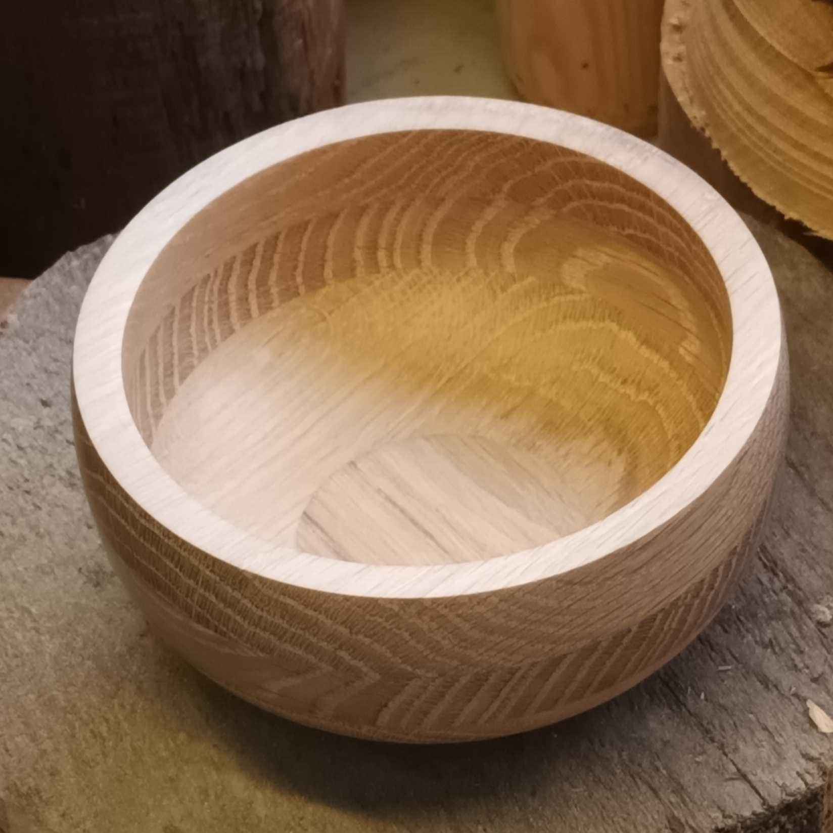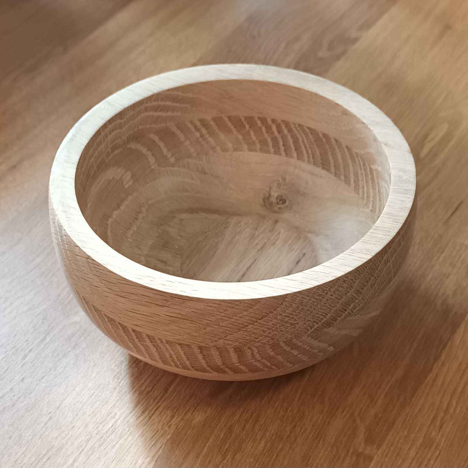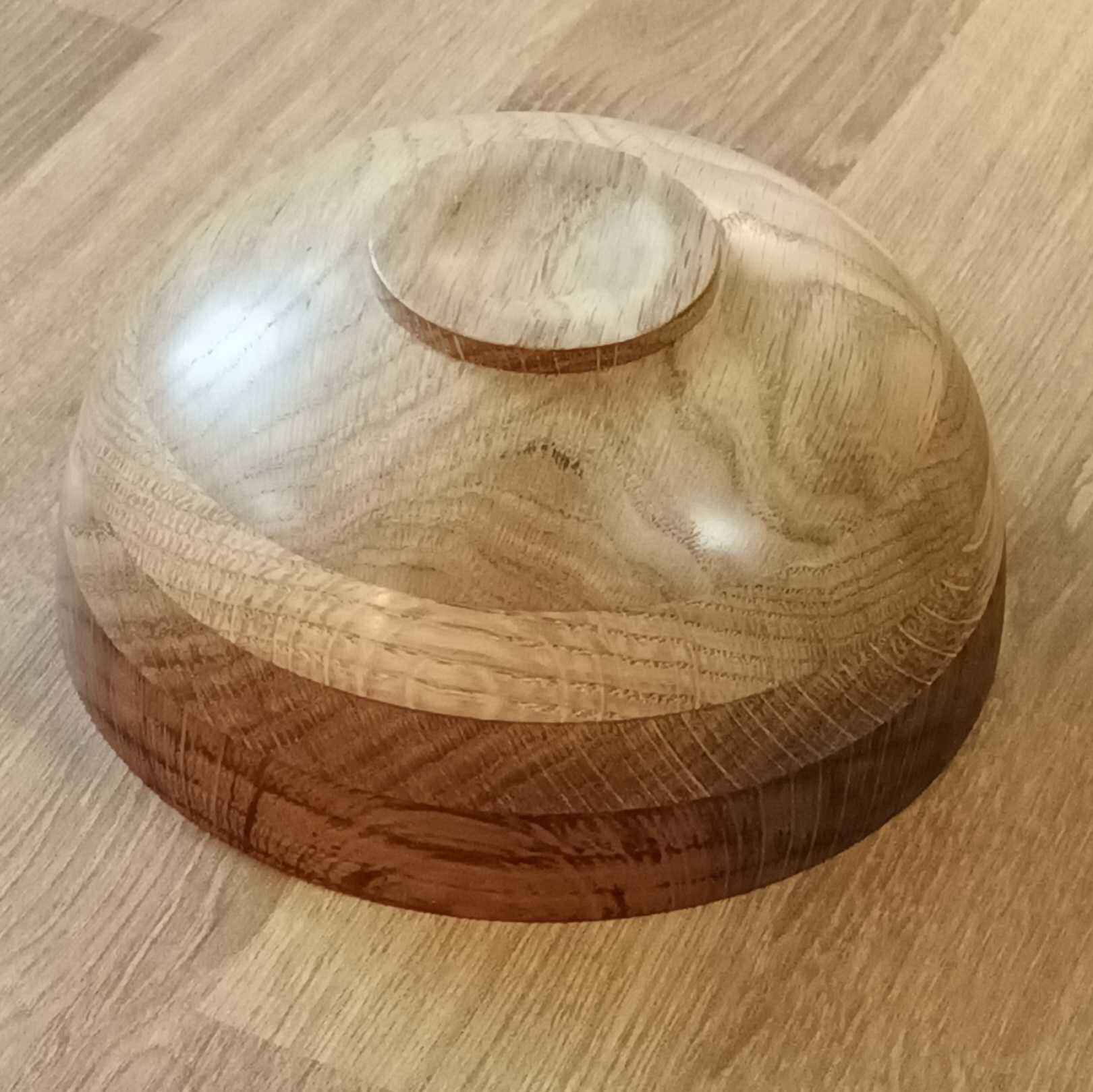 ad made a coffee table for my brother many years ago. With some of the offcuts he made several of these layered oak blanks. This is a fairly classical form, with the layers giving different grain patterns and adding interest. It is unfinished (i.e. no wax or oil!).