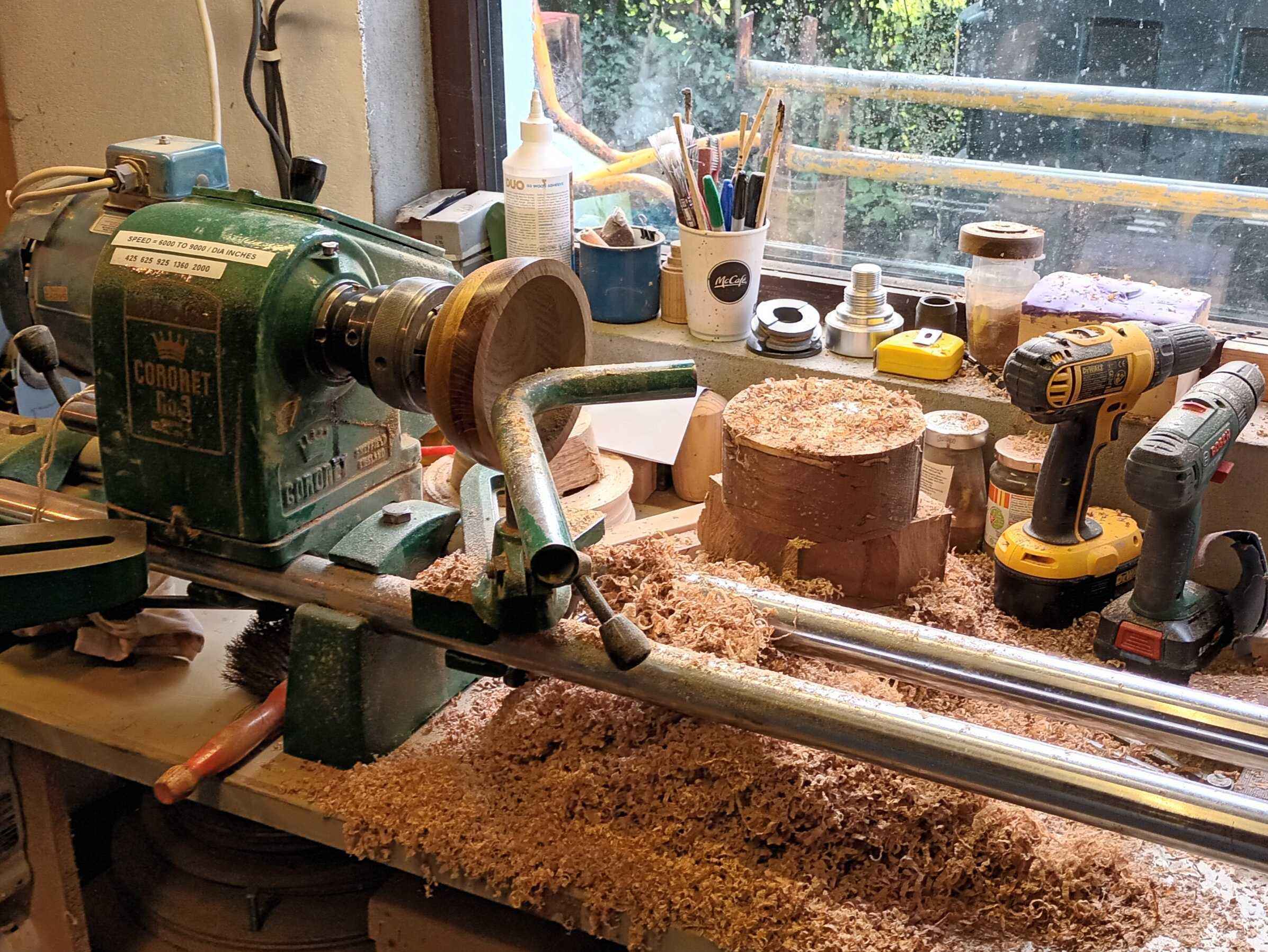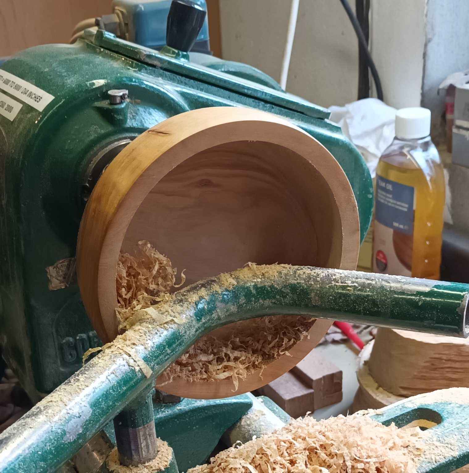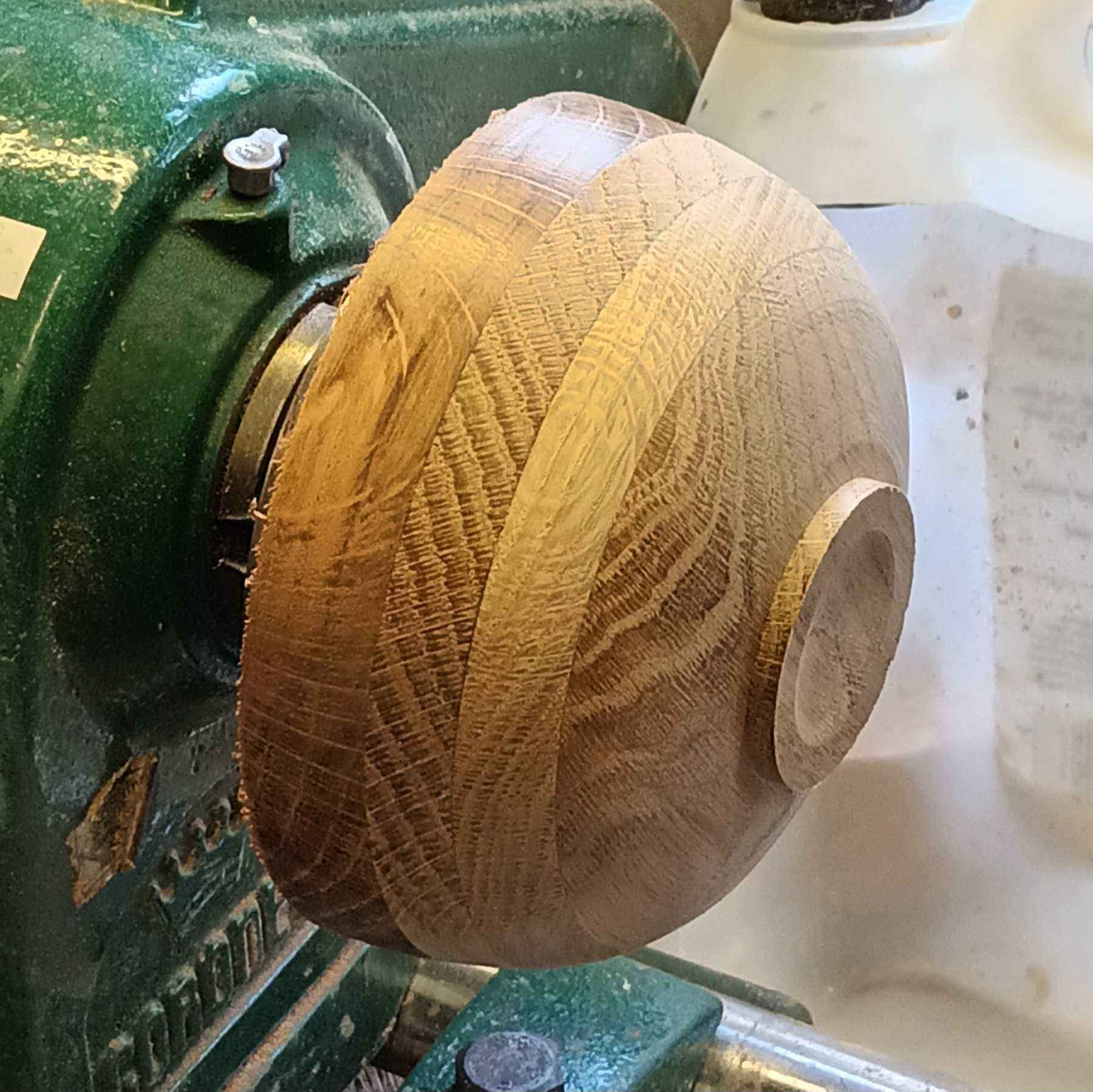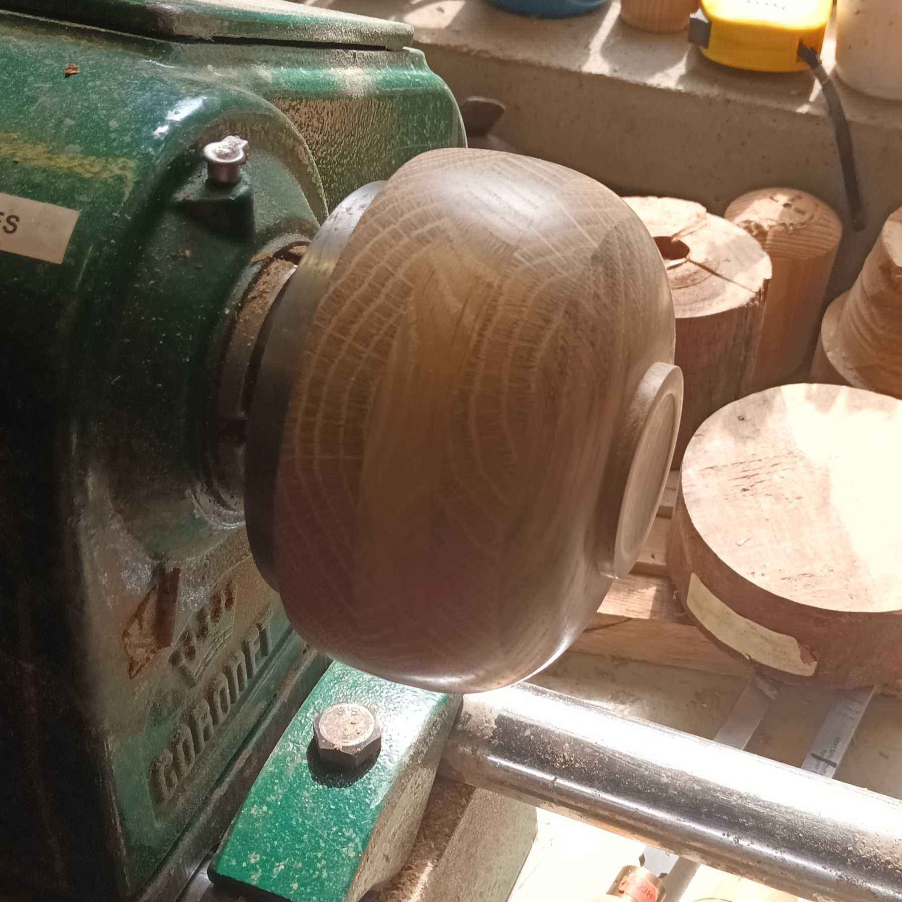 ad made a coffee table for my brother many years ago. With some of the offcuts he made several of these layered oak blanks. This is a fairly classical form, with the layers giving different grain patterns and adding interest. It is unfinished (i.e. no wax or oil!).