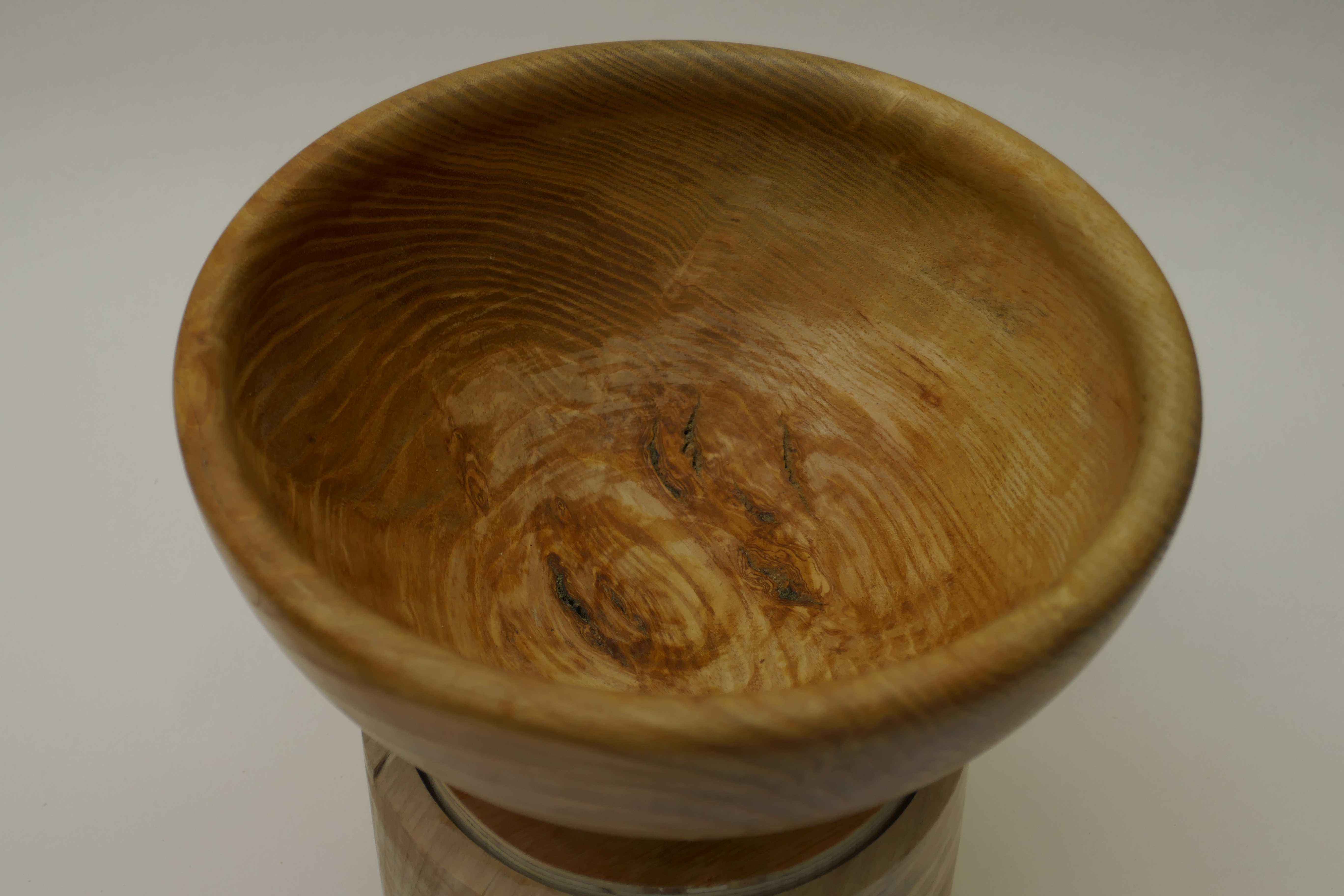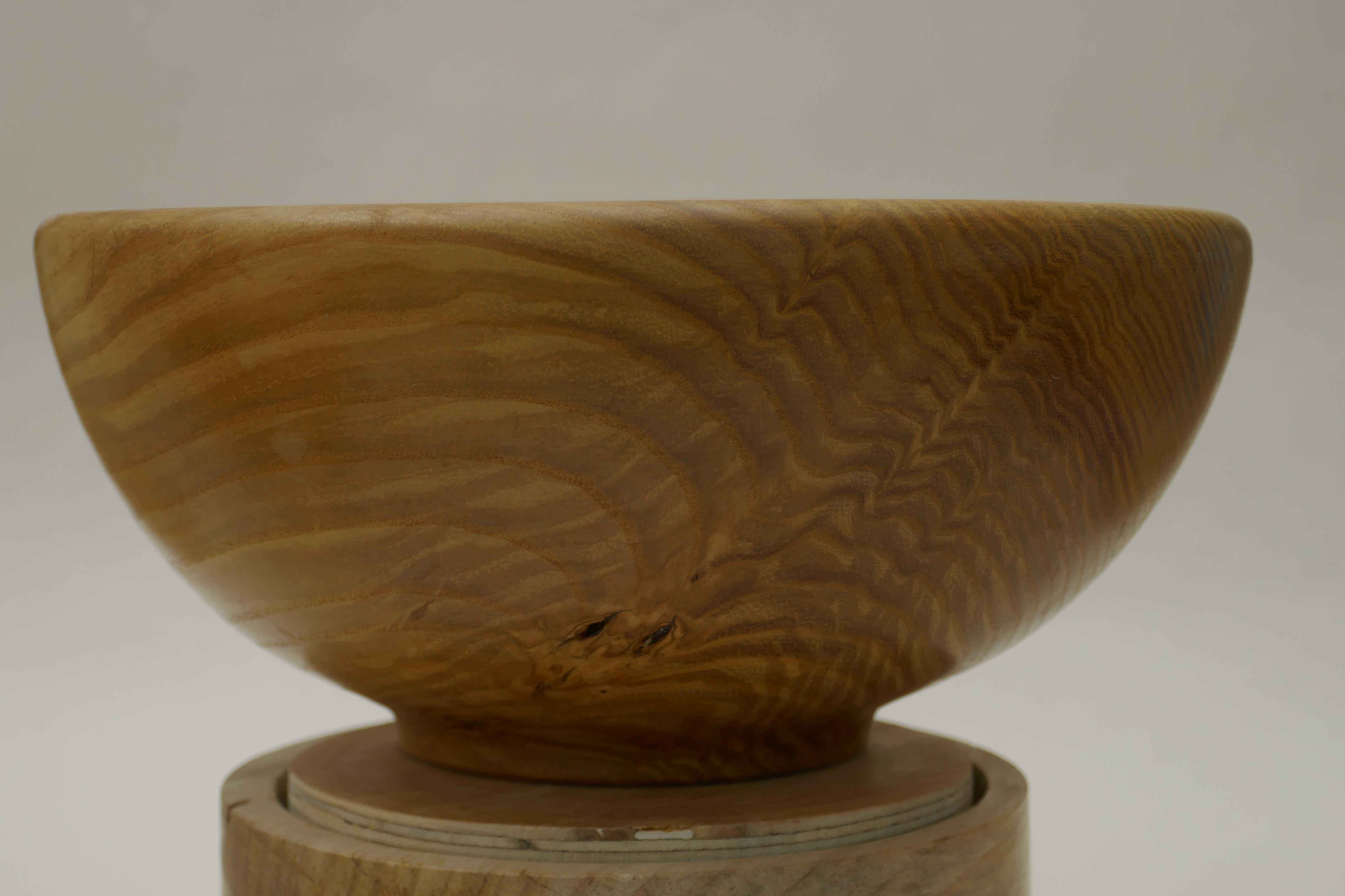One my dad made from a piece of figured ash. A classic hemispherical bowl shape with a rounded rim.