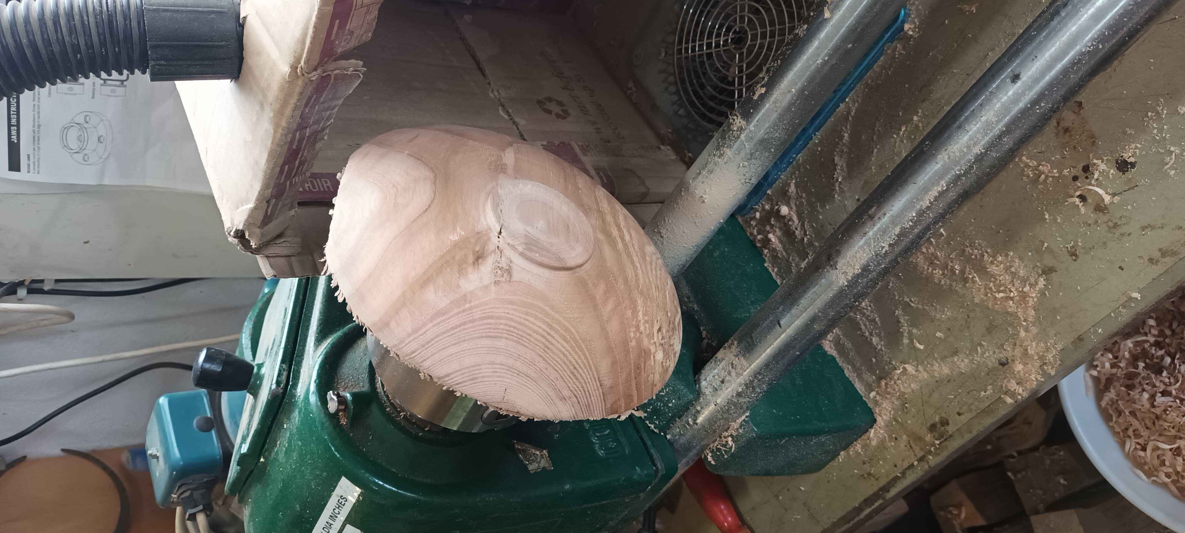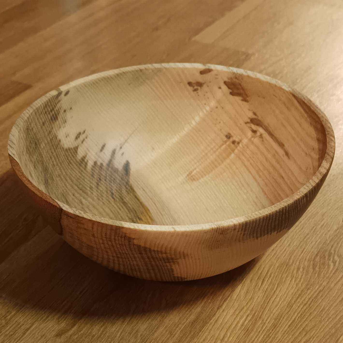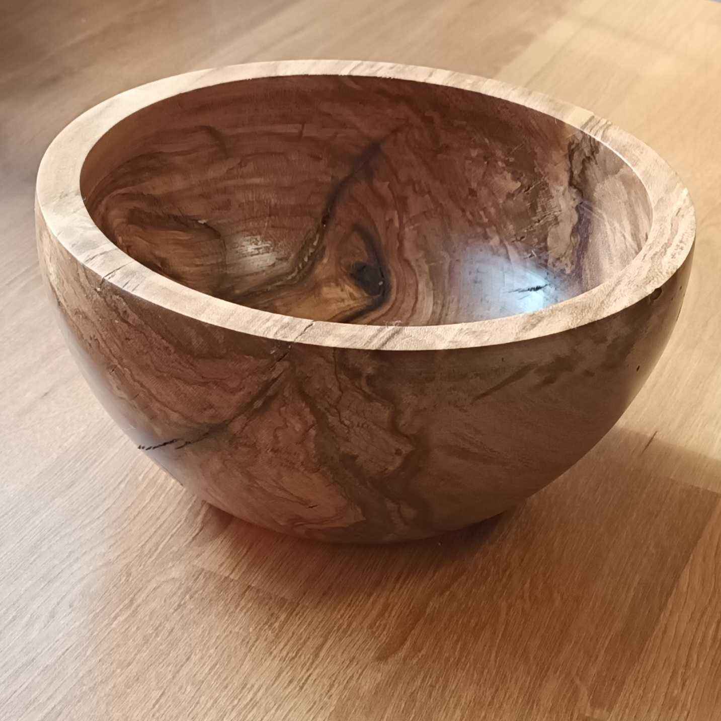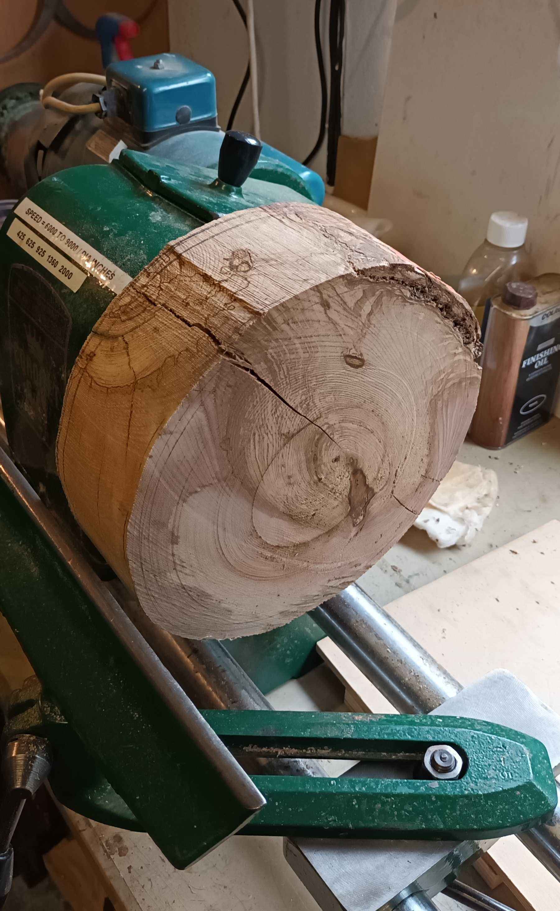I helped to cut up a poplar tree in a friend's garden, and now have quite a stack of wood slowly seasoning. Poplar is a fairly plain wood with an uninteresting grain, so the challenge is to find pieces of wood that have some interest, such as from near or actually containing a branch junction, or with some spalting from where fungi have started to attack the wood.
