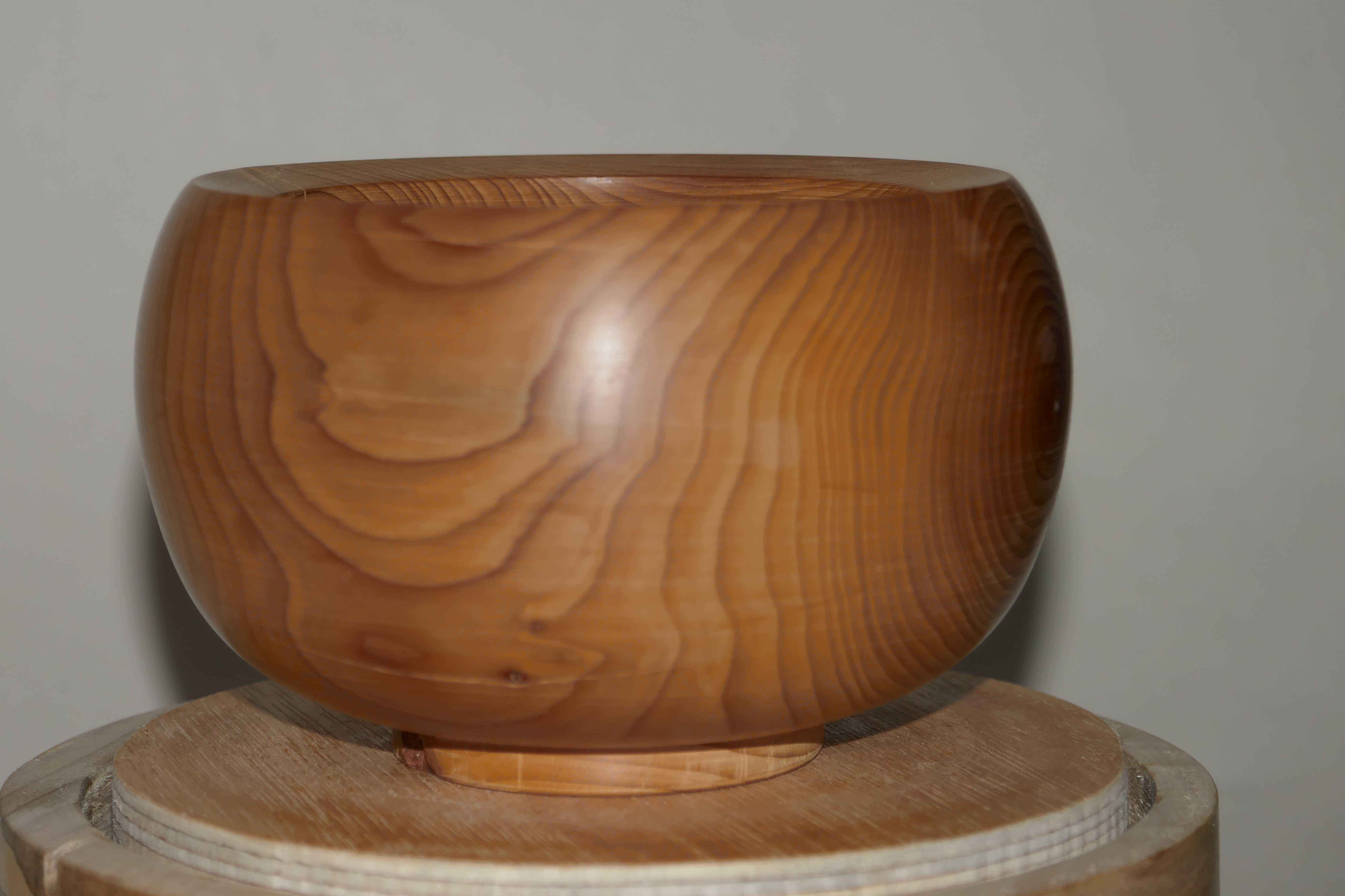 This is another piece from the yew cut down at my uncle's house. Note that yew is not considered food safe even though this looks like a handy snack bowl! Yew developes a lovely colour as it ages. This piece is still fairly fresh.