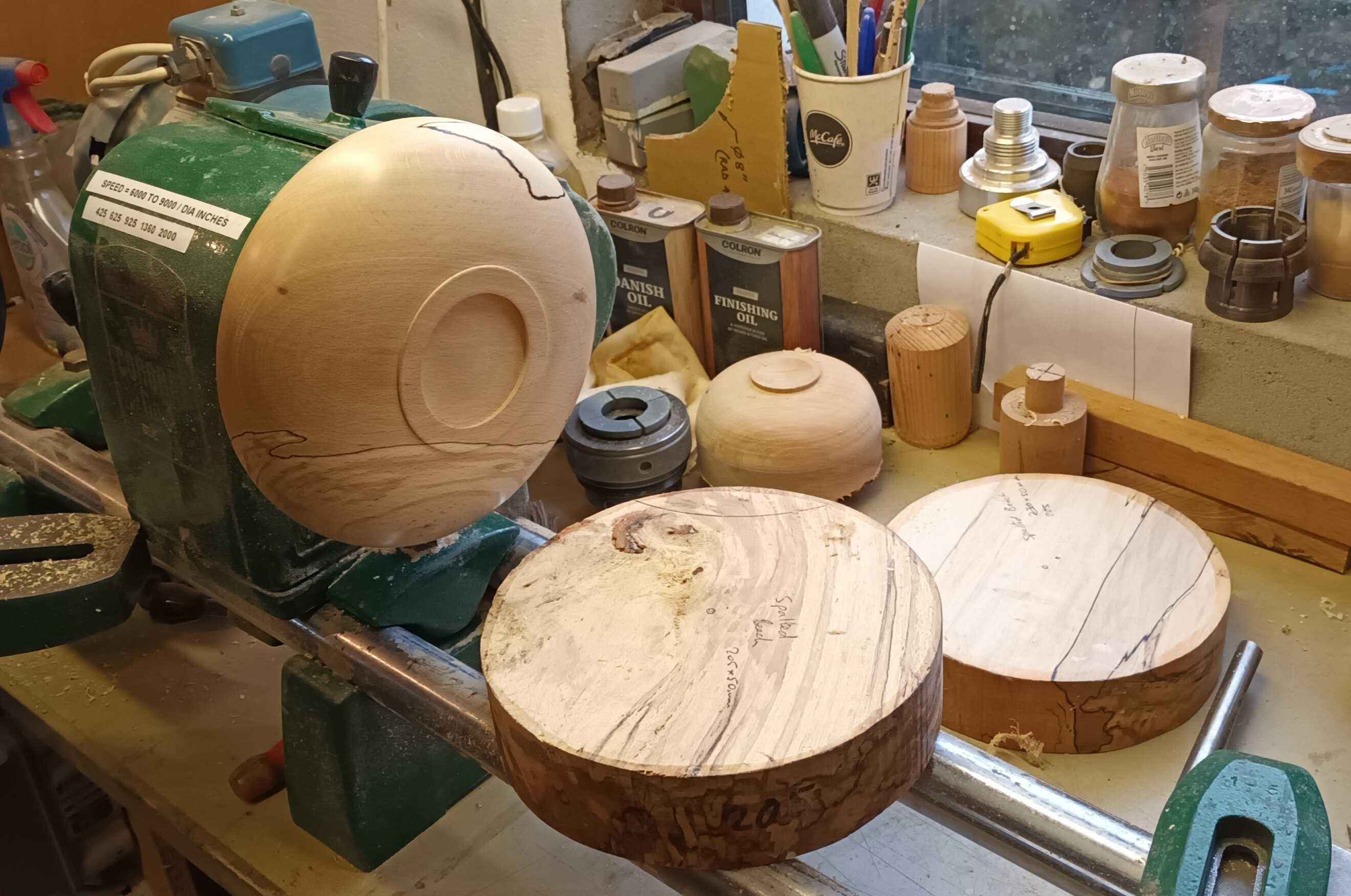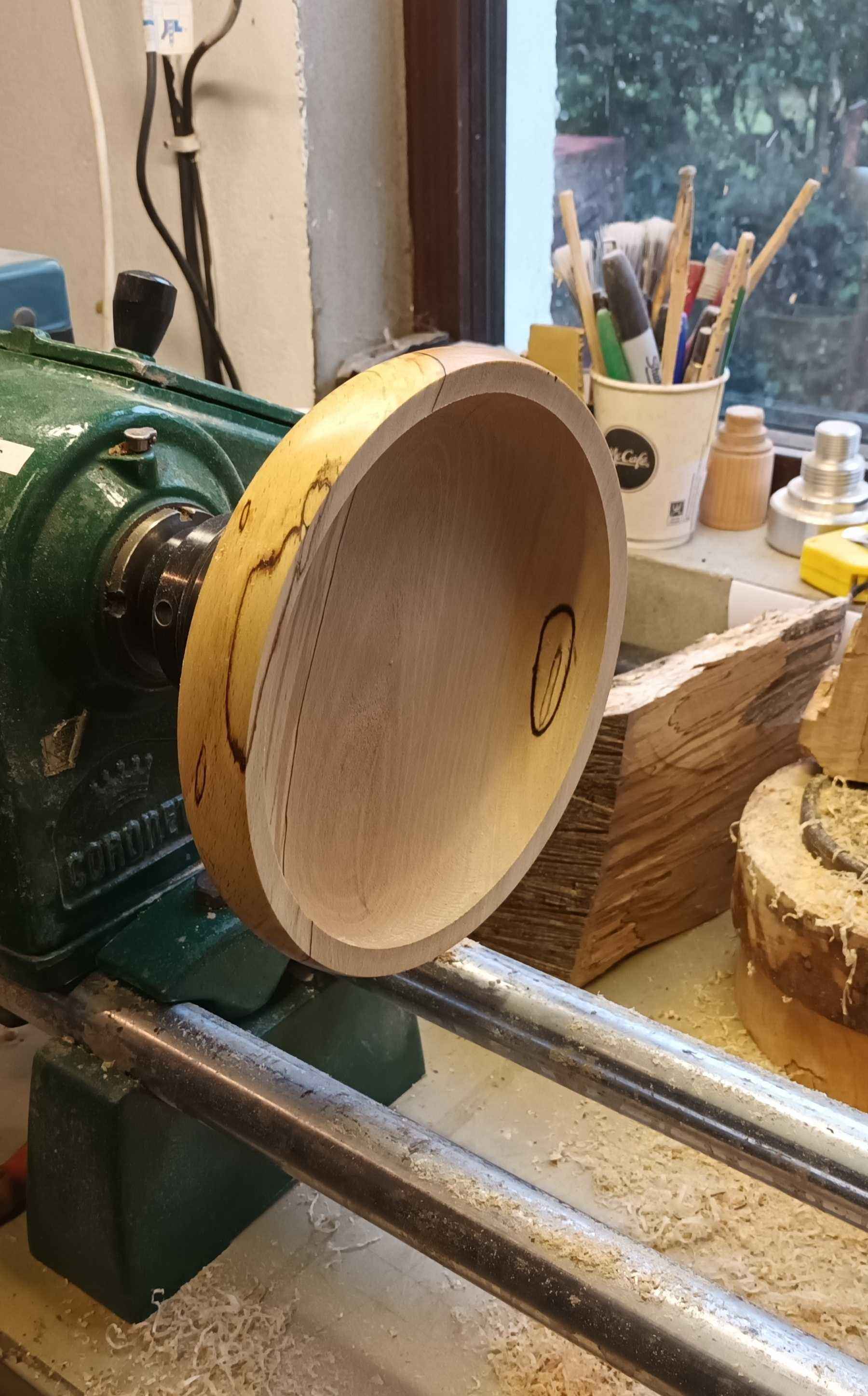 Wood that has fallen will sometimes have interesting colouration caused by fungii known as spalting. This can be simple colours such as yellows, pinks and purples, or in the case of this bowl the more classic black lines which is a mineral deposit. The dried wood is quite harmless to humans. The spalting adds a level of interest to the visual bowl, and each piece will be as unique as a fingerprint! This is a bowl from a set of three blanks which I bought, but each one is slightly different, and I have also given them a different shape.
