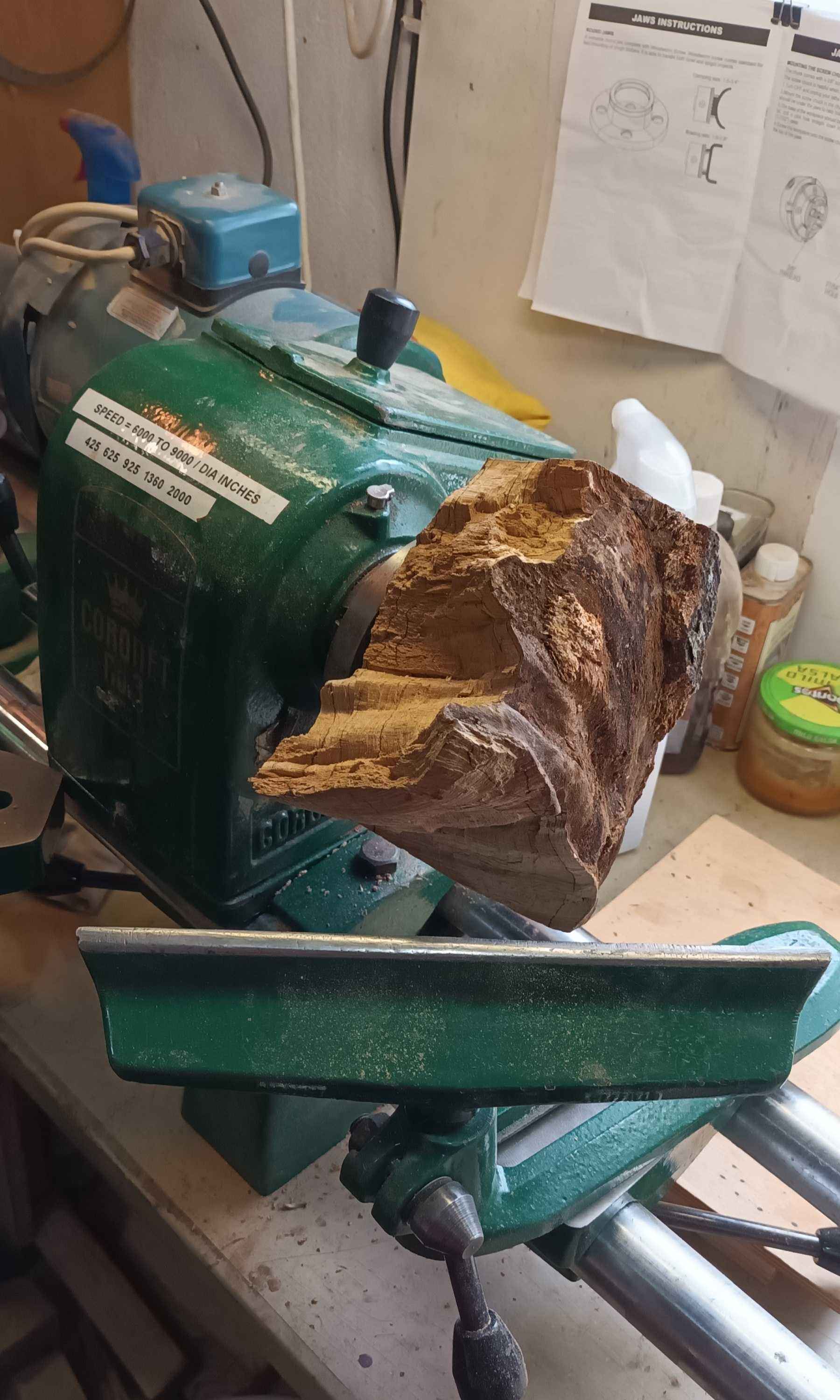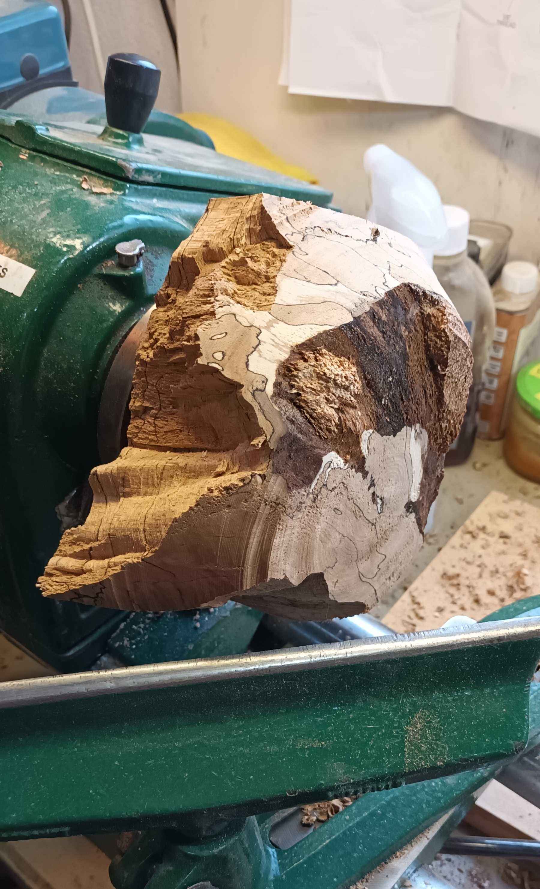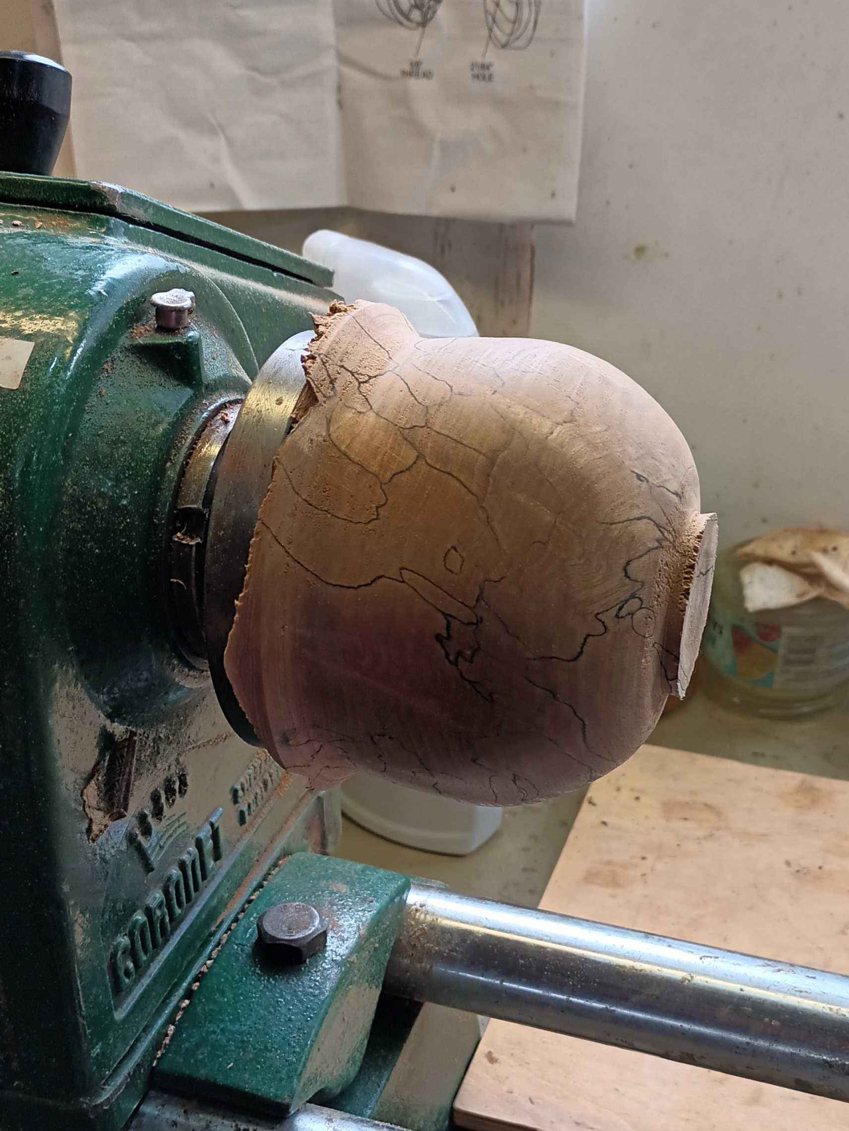 Almost a goblet, this one. I didn't think I was going to get much from this piece, but by turning in the top I was able to avoid some "scars" and ended up with quite a cute shape that has a decent amount of patterning.