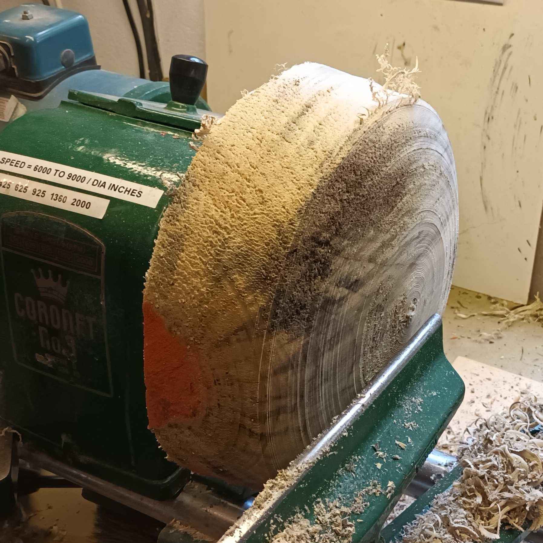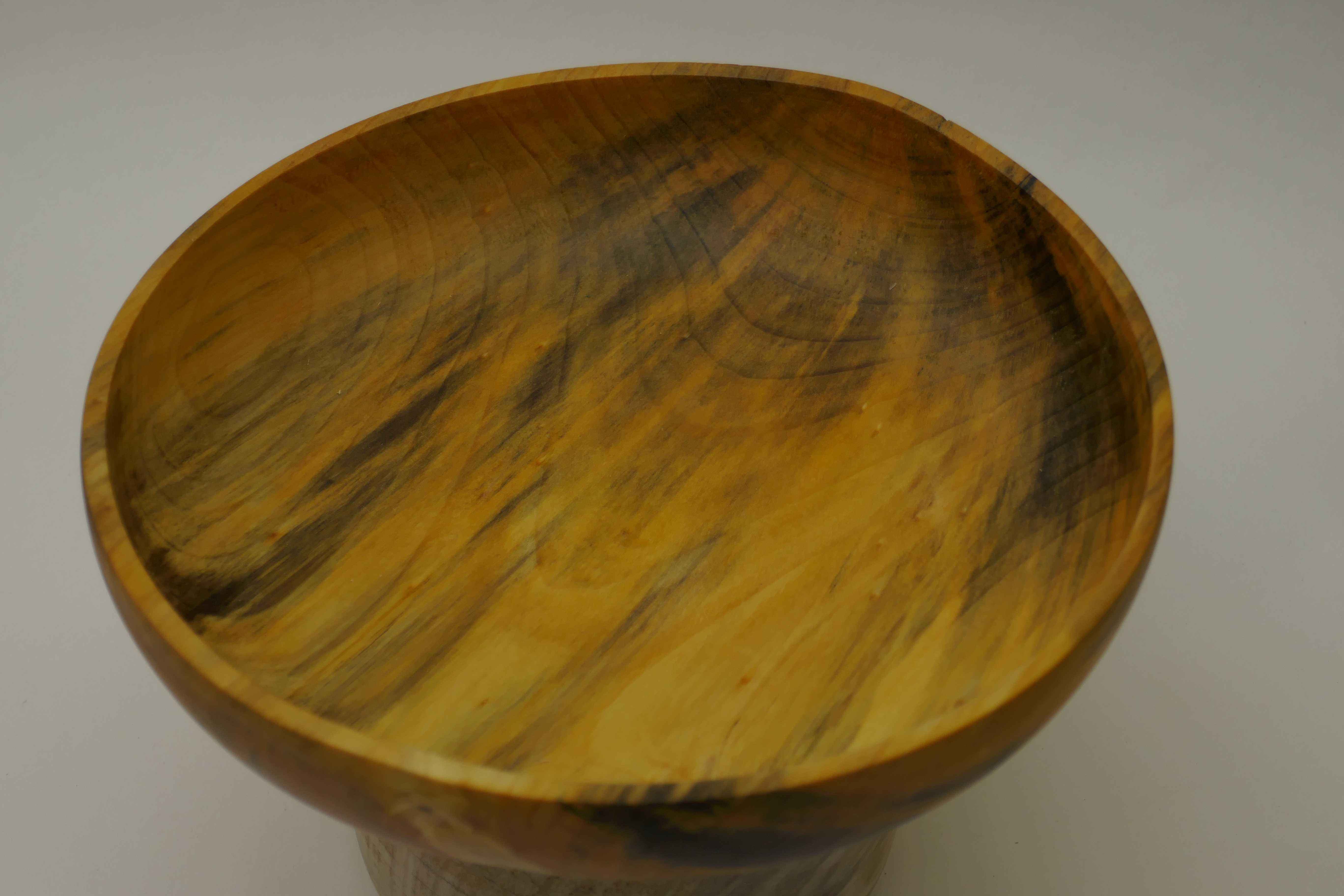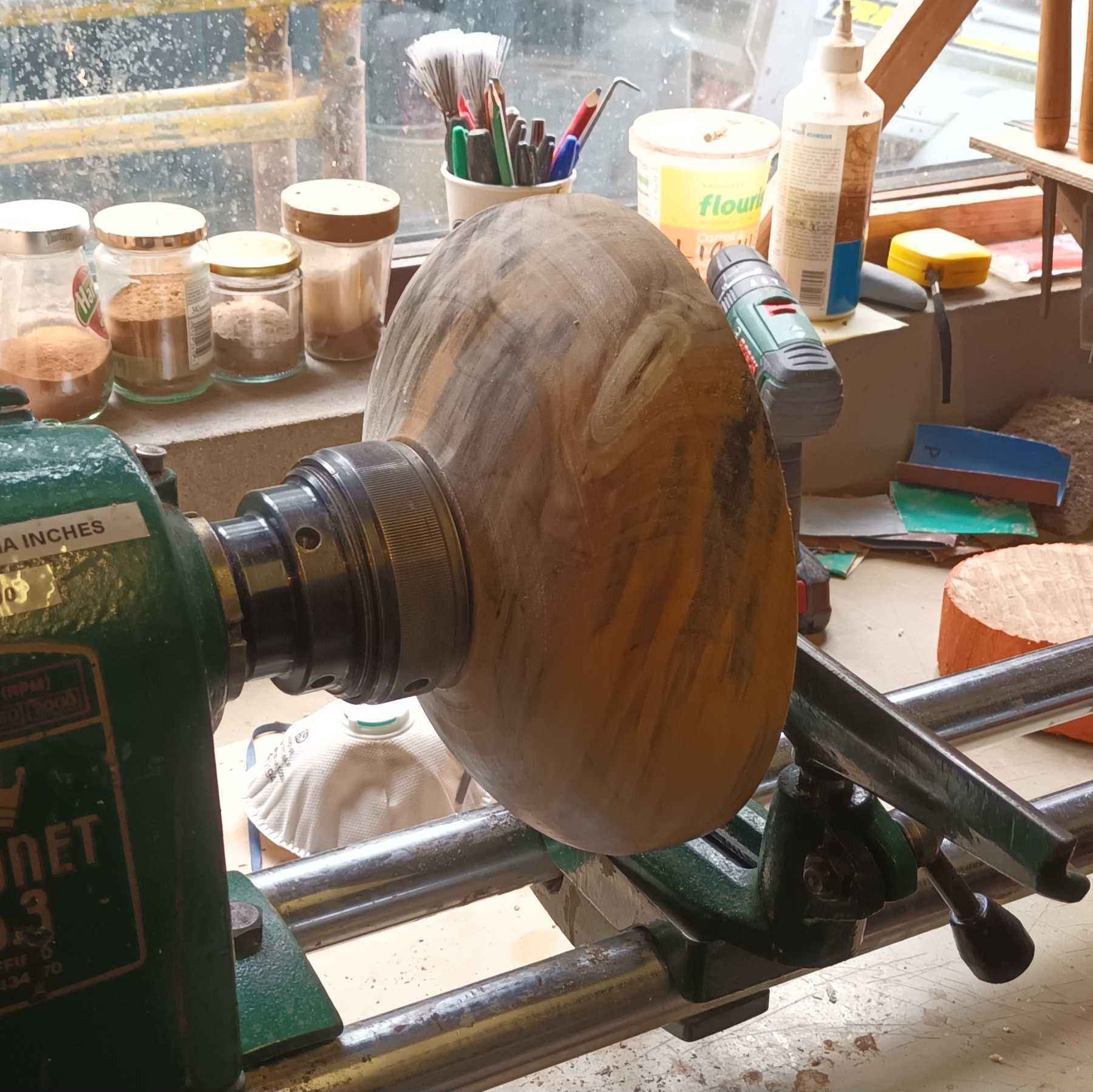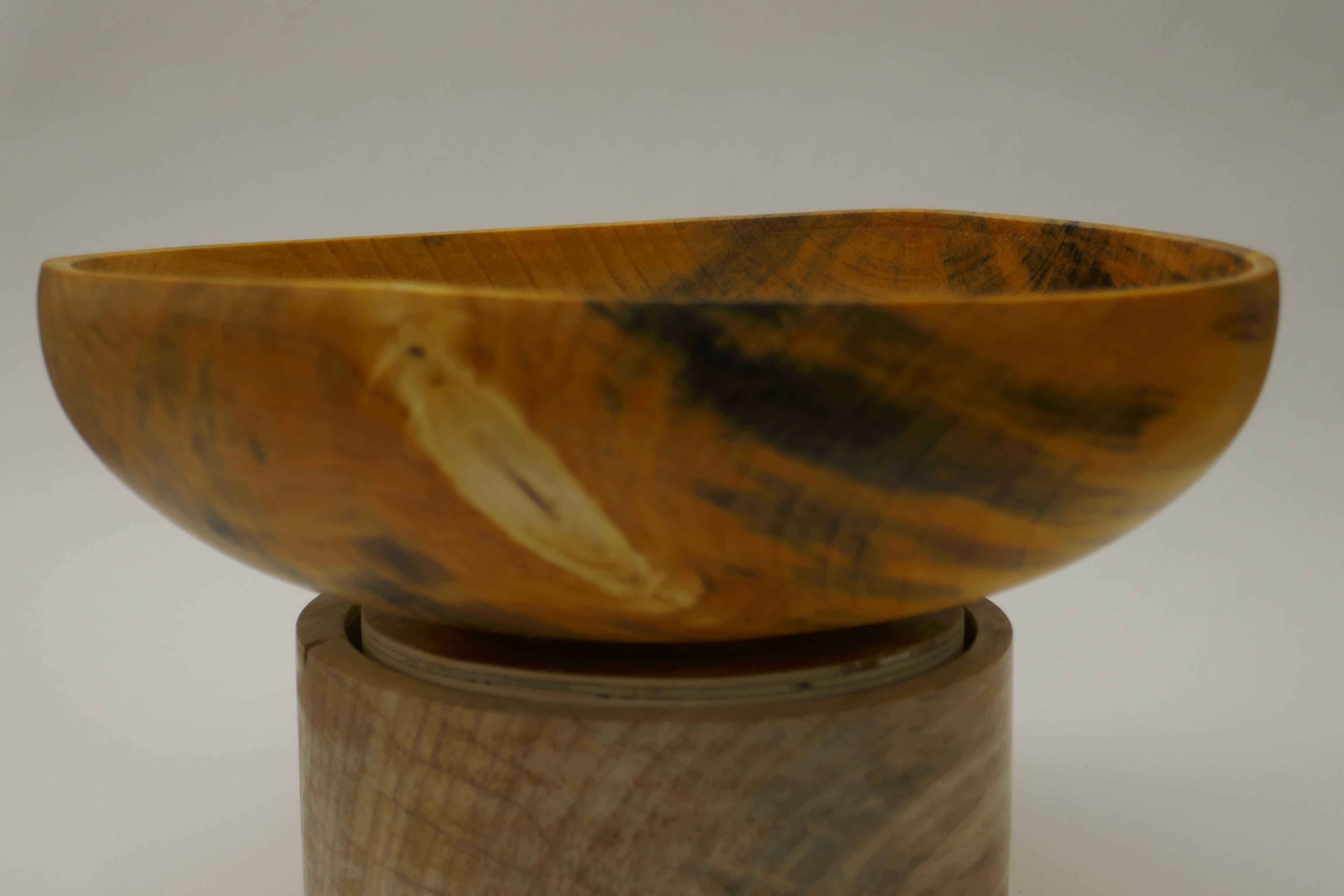 The ash was quite waterlogged when I got it, and this seems to have made the fibres quite weak, so it was very difficult to turn without the end grain tearing out. It was also still damp, and impossible to polish, even though four coats of linseed oil were used. I put it on the shelf and left it for some weeks to dry, when I was able to bring it to a shine with a boiled linseed oil and beeswax mixture. The bowl has warped slightly, which adds to its character, but stands flat on its base.