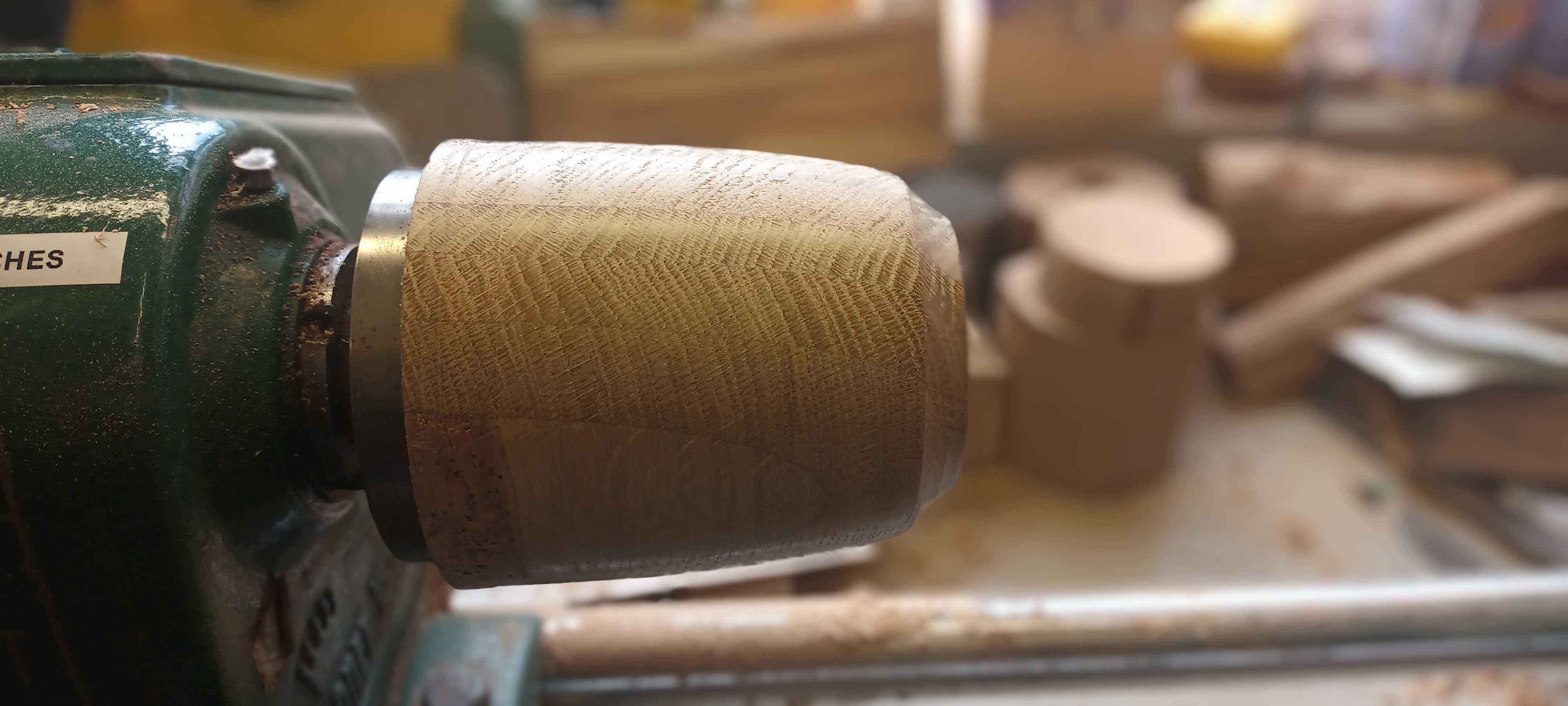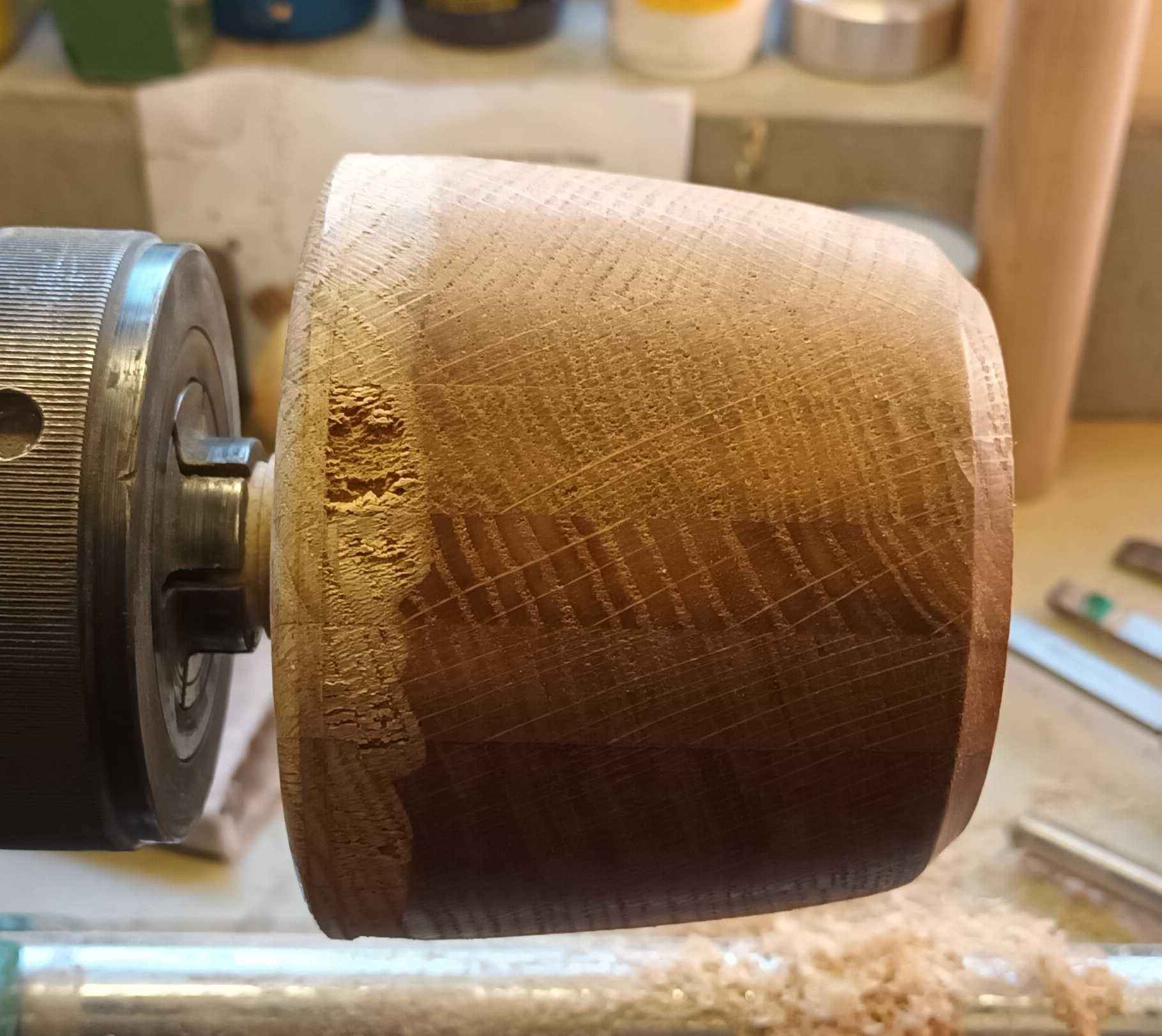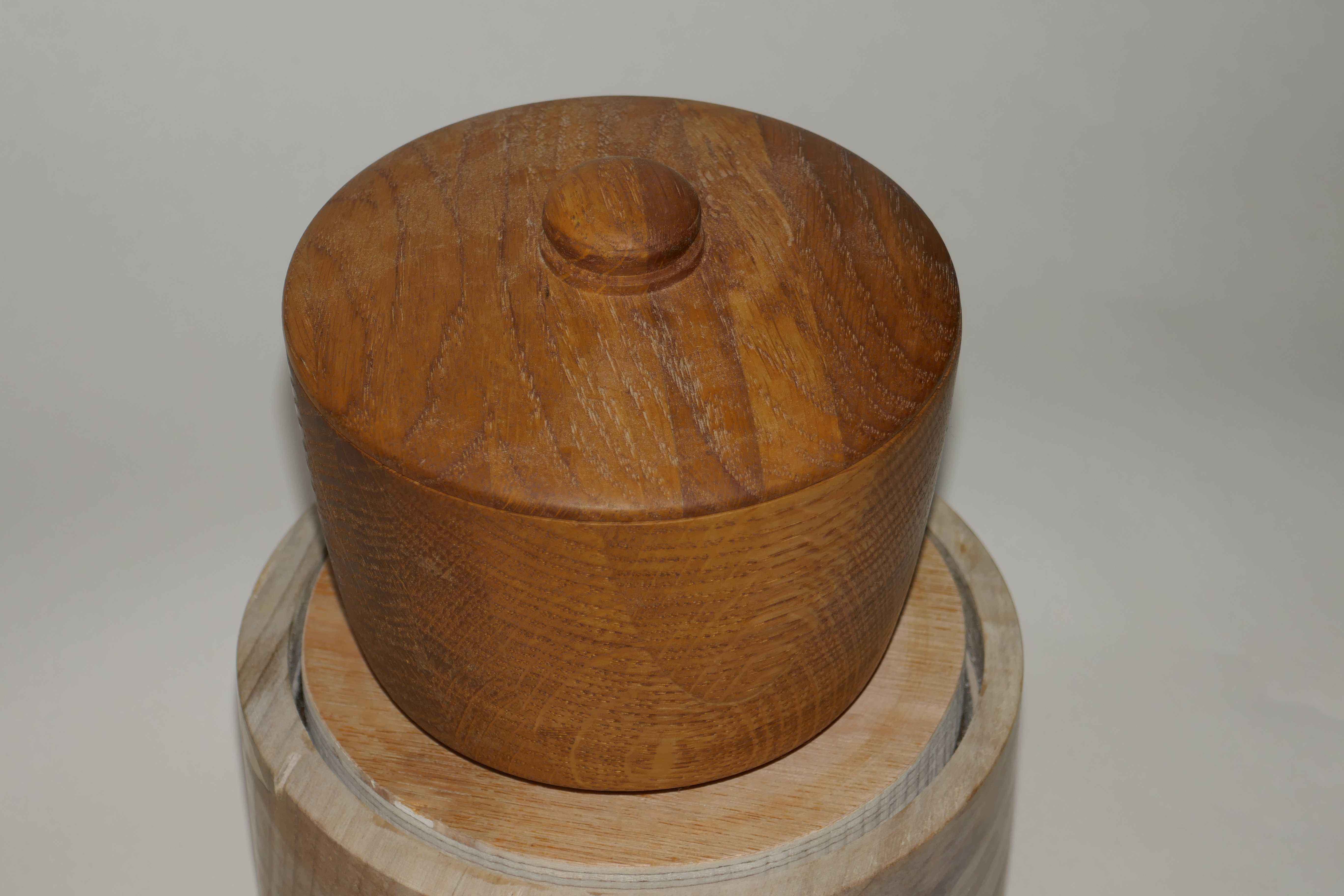 Dad made a coffee table for my brother many years ago. With some of the offcuts he made several of these layered oak blanks. Two I made into bowls, but this one was taller, and I though a lidded pot would be nice to try.