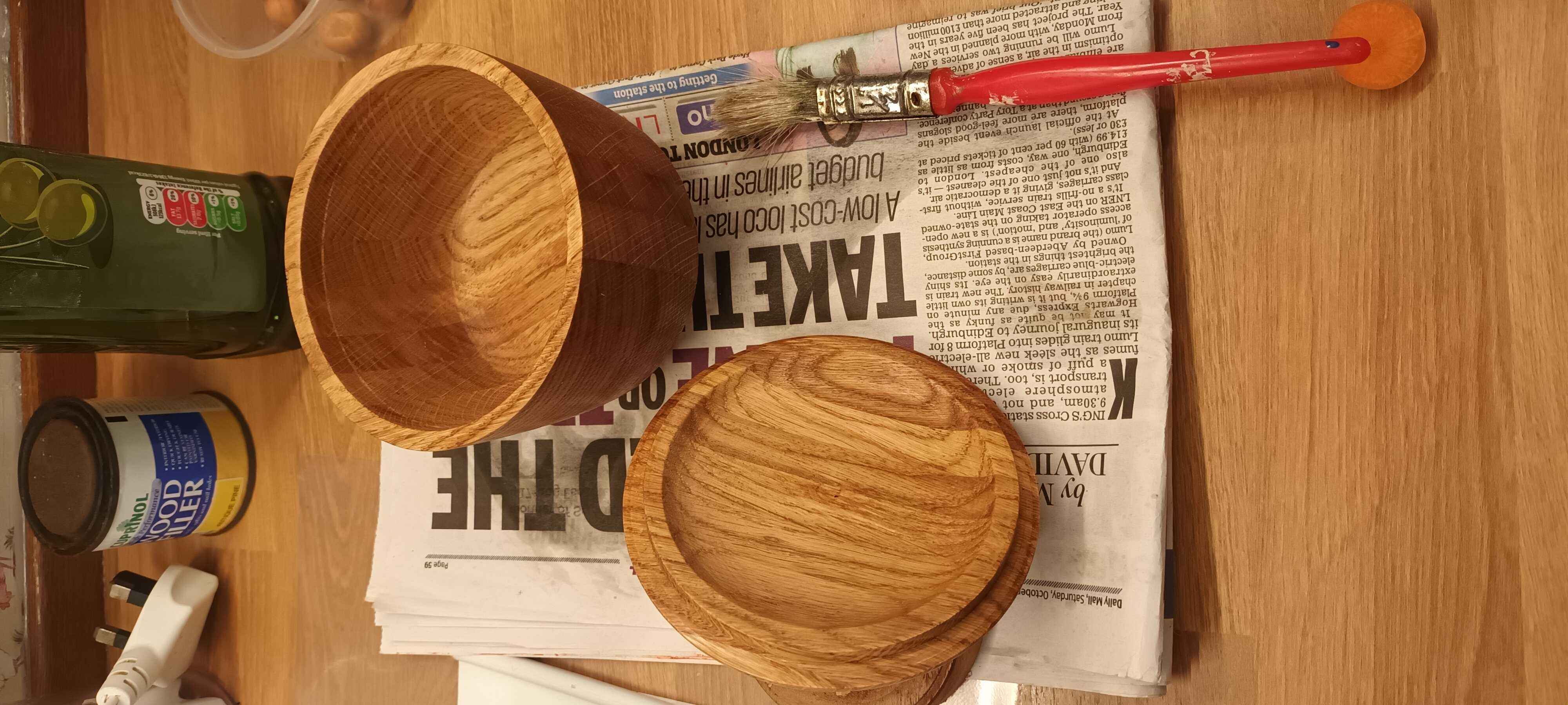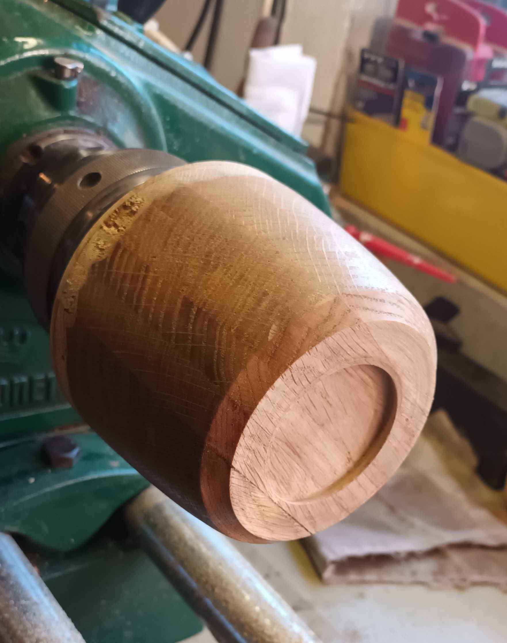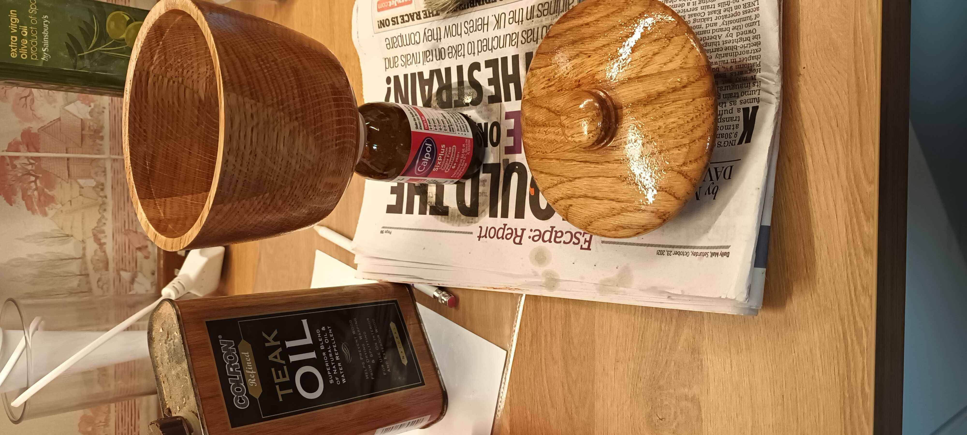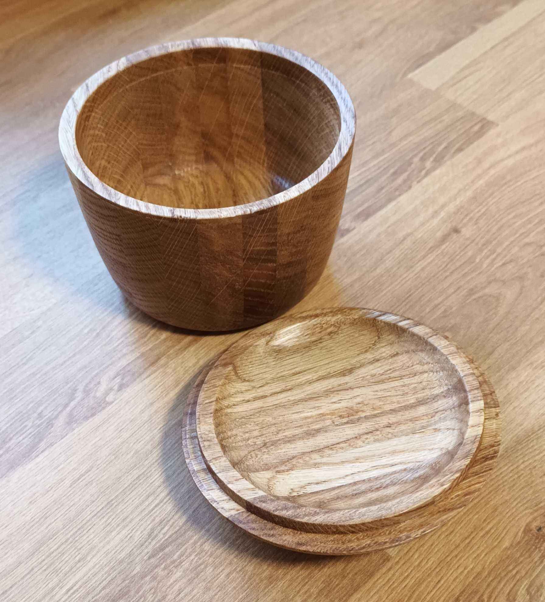 Dad made a coffee table for my brother many years ago. With some of the offcuts he made several of these layered oak blanks. Two I made into bowls, but this one was taller, and I though a lidded pot would be nice to try.