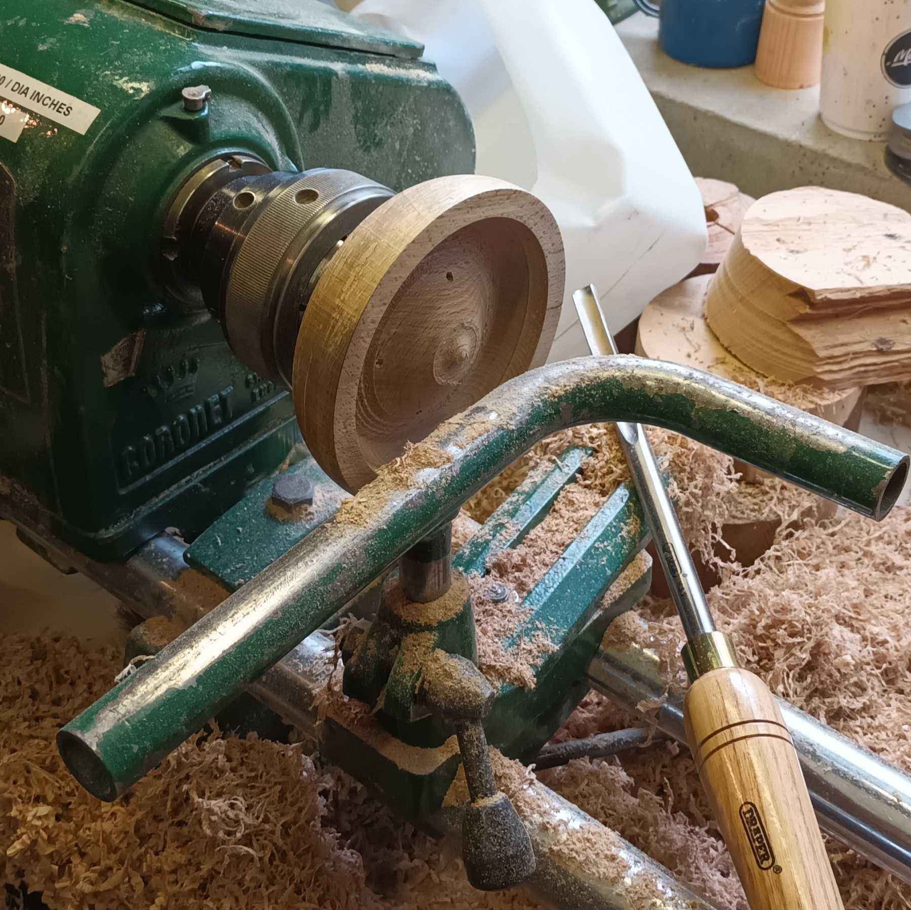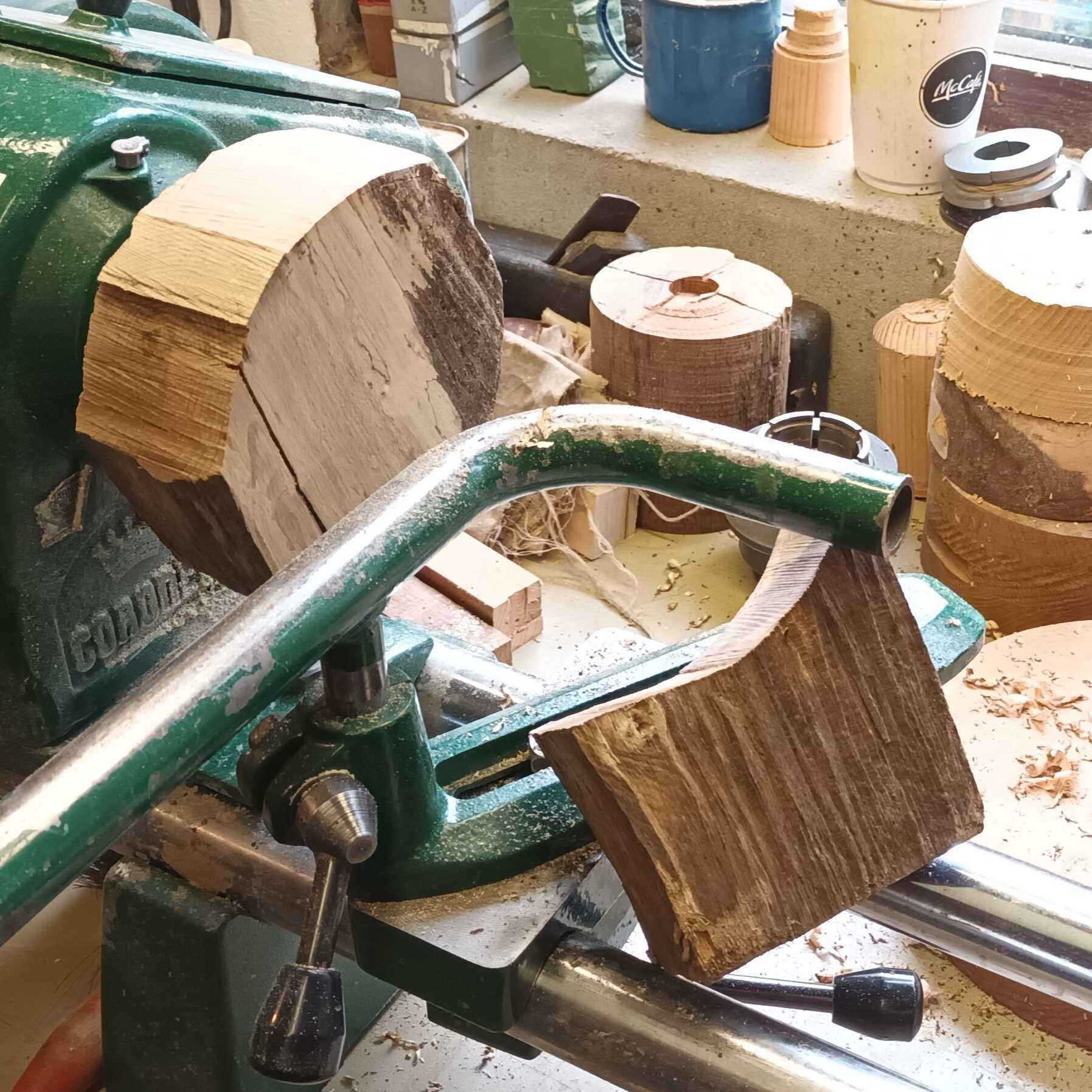 This is a piece of wood I found by the side of the road when we stopped the motorhome on the way to Sligo to make a cup of tea. The dark coloration is from mud soaked into the end grain. Pro tip - don't try to turn mud, it really blunts the tools quickly! There is a slight shake (drying crack) in the dark side.