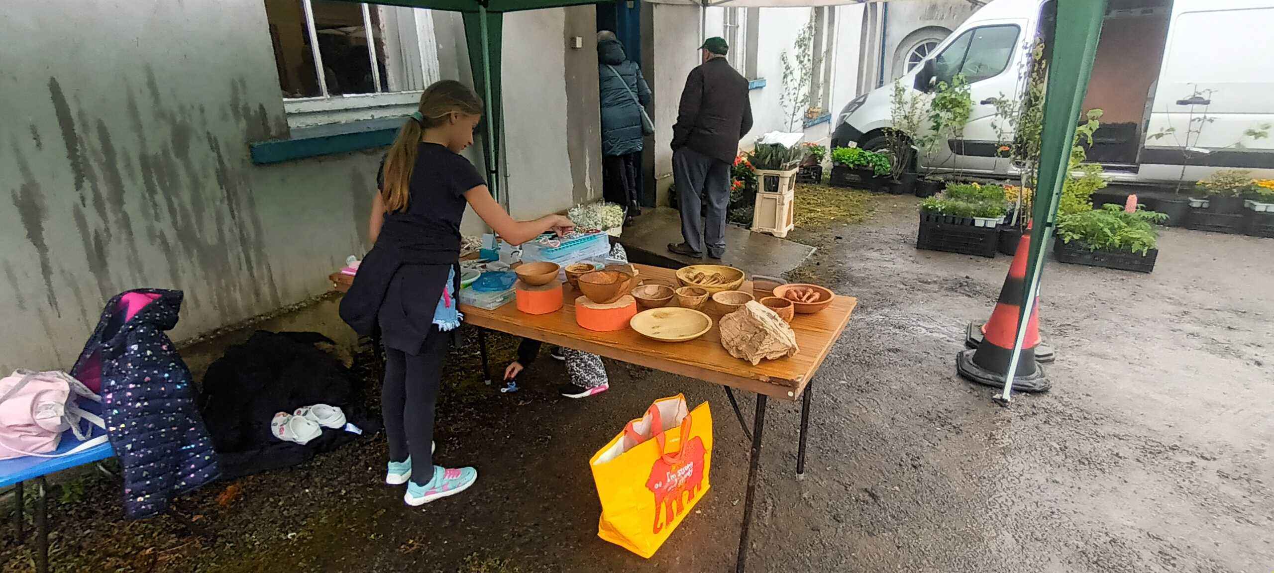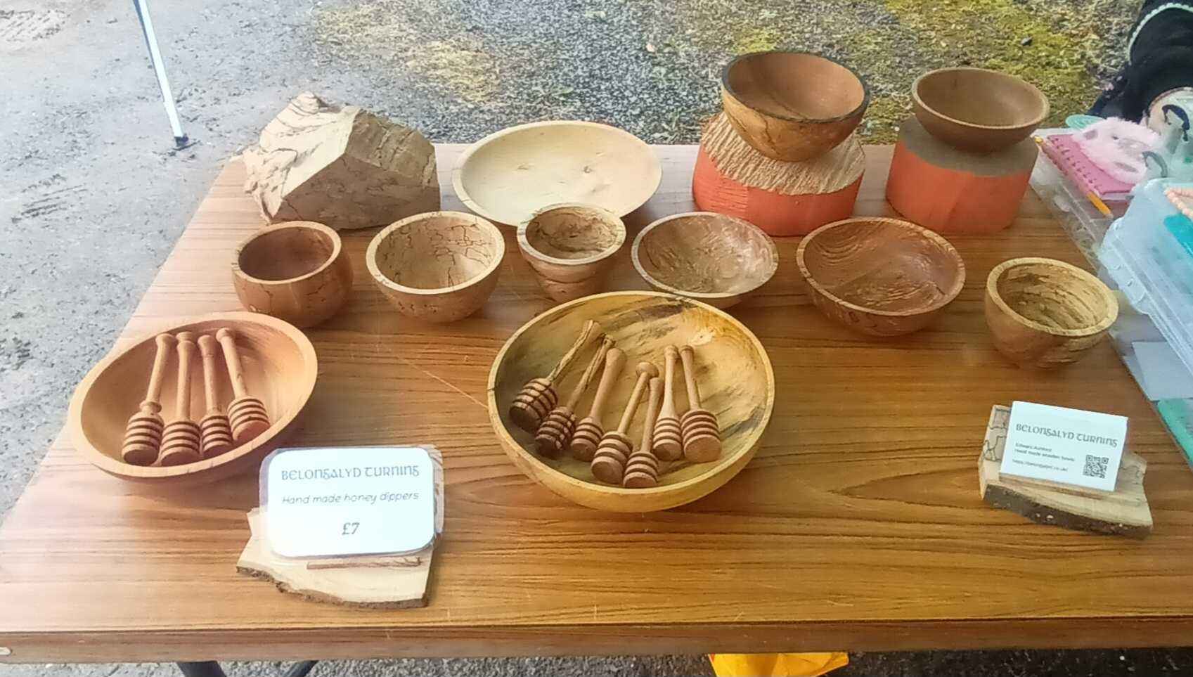 It was a bit wet! My daughter and a friend braved the weather to use a third of my table selling little knick knacks they had made. I sold a few honey dippers, but sadly no bowls.